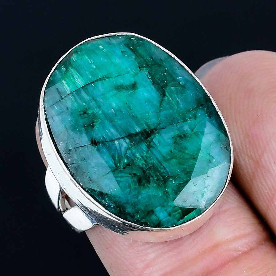 как выглядит Fascinating Skota Emerald Gemstone 925 Sterling Silver Ring Size 6.5 фото