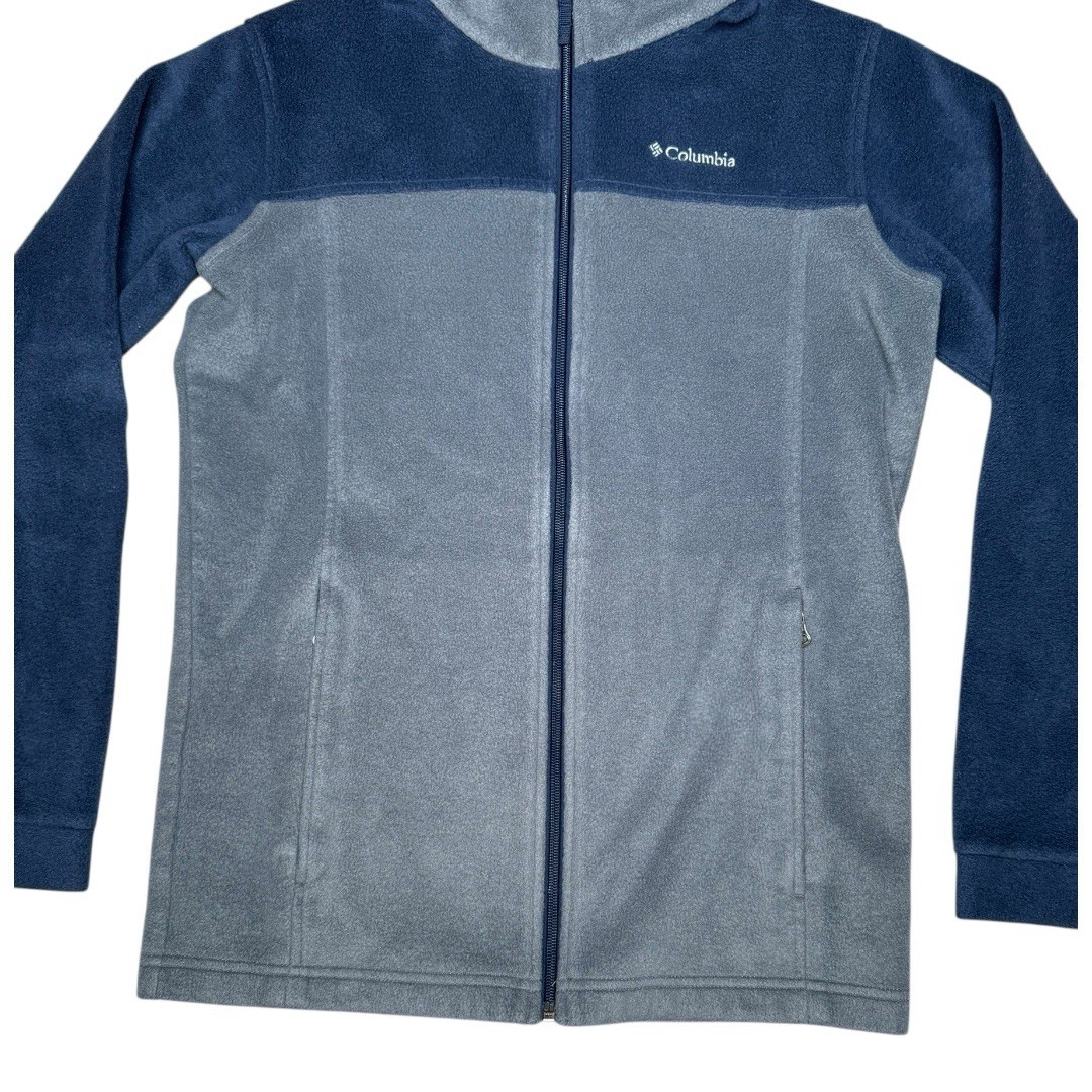 как выглядит Columbia Boys Omni-Heat Fleece Jacket L 14/16 Full-Zip Pockets Navy Blue Gray фото