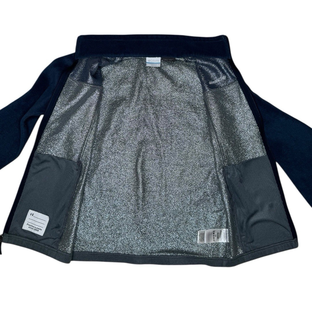 Columbia Boys Omni-Heat Fleece Jacket L 14/16 Full-Zip Pockets Navy Blue Gray