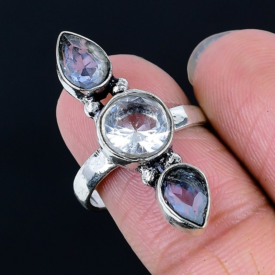 как выглядит Fantastic White Topaz Gemstone Handmade 925 Sterling Silver Ring Size 8 фото