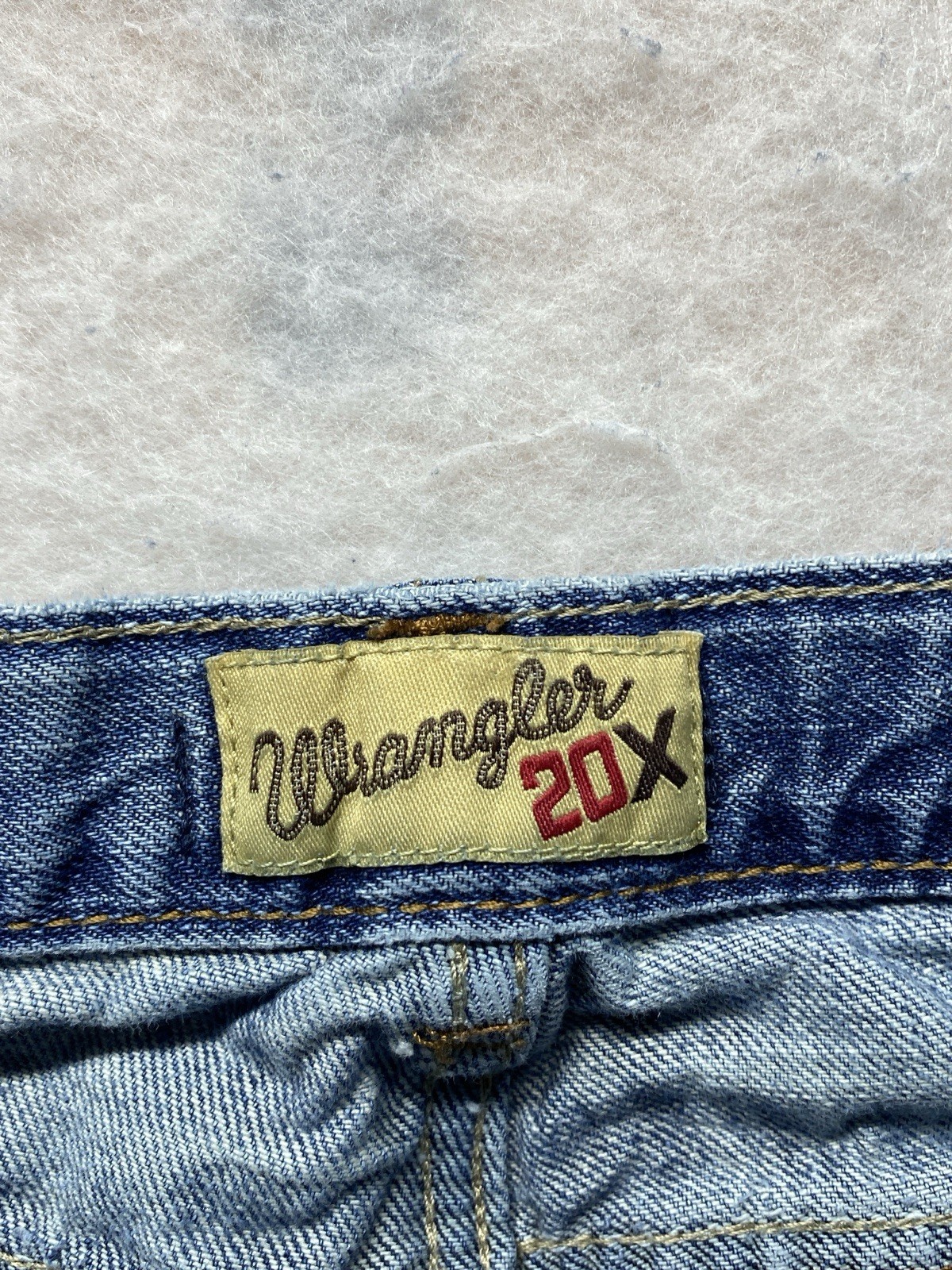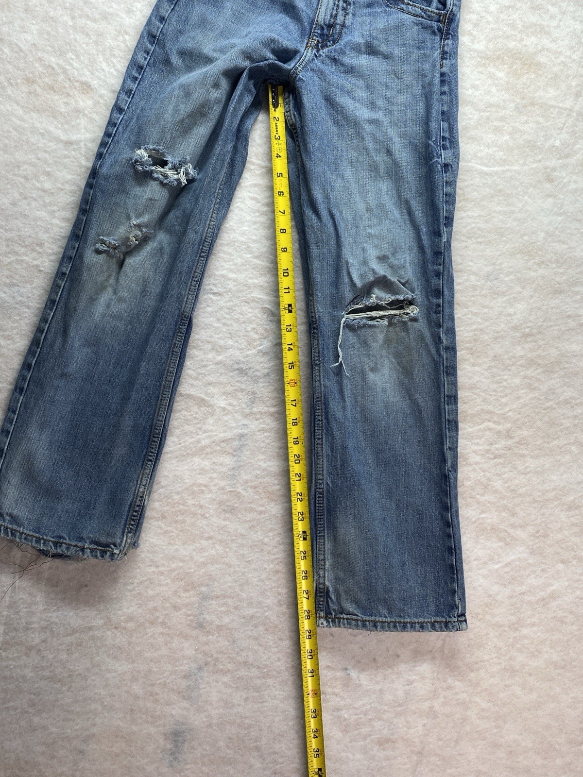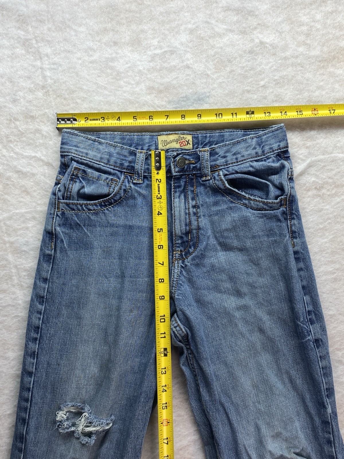 как выглядит Wrangler 20x youth boys size 16 28x29 blue distressed bootcut denim jeans фото