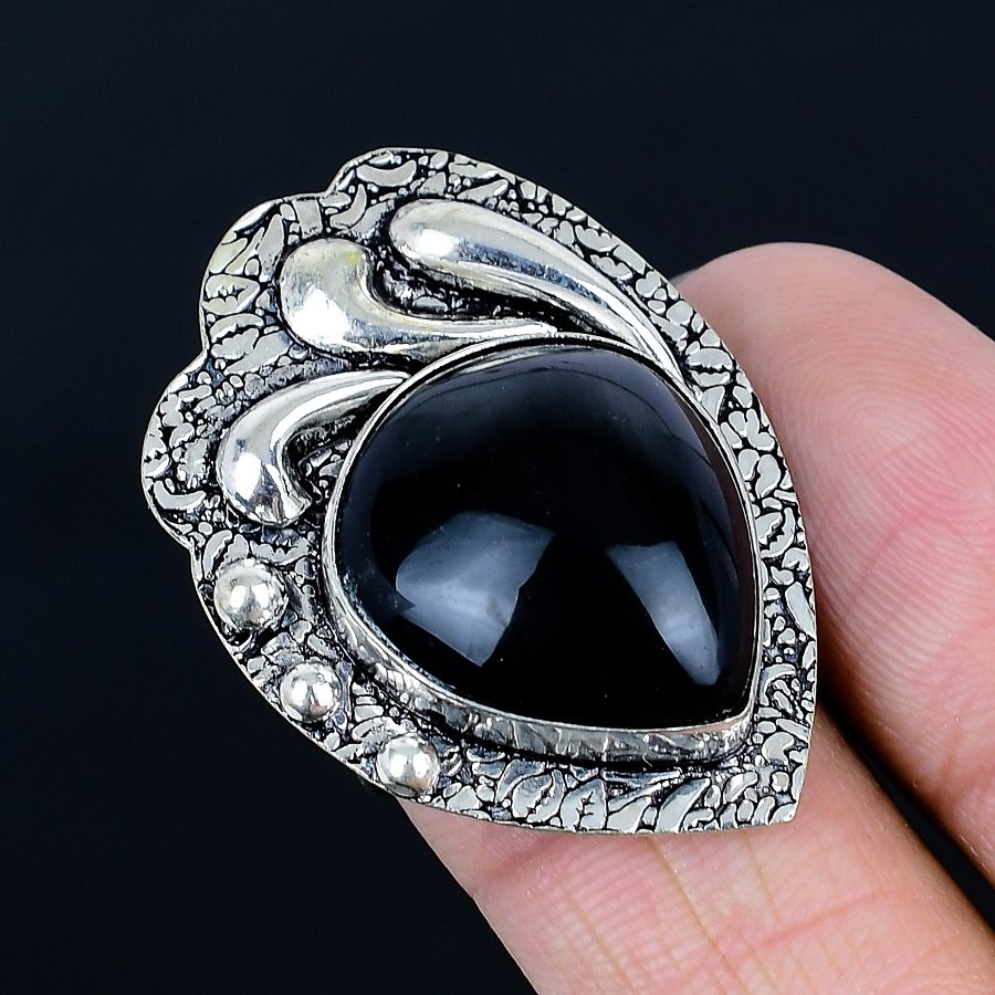 как выглядит Classic Black Onyx Gemstone Handmade 925 Sterling Silver Ring Size 8 фото