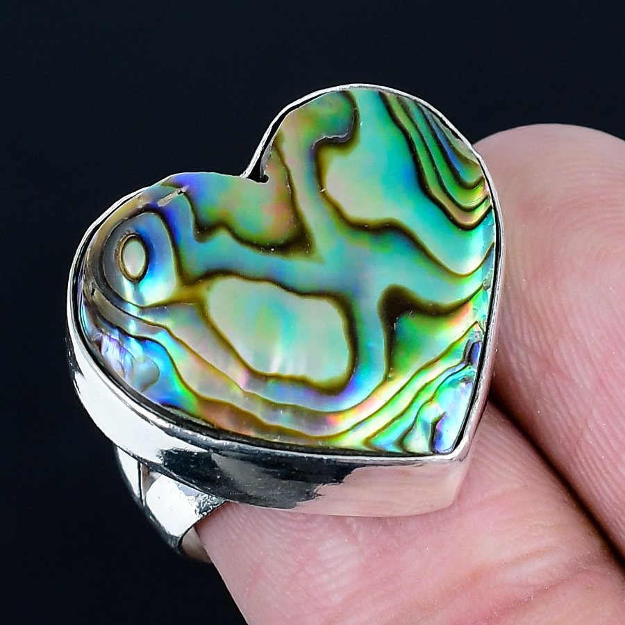 Purchritudinous Abalone Shell Gemstone 925 Sterling Silver Ring Size 6.5