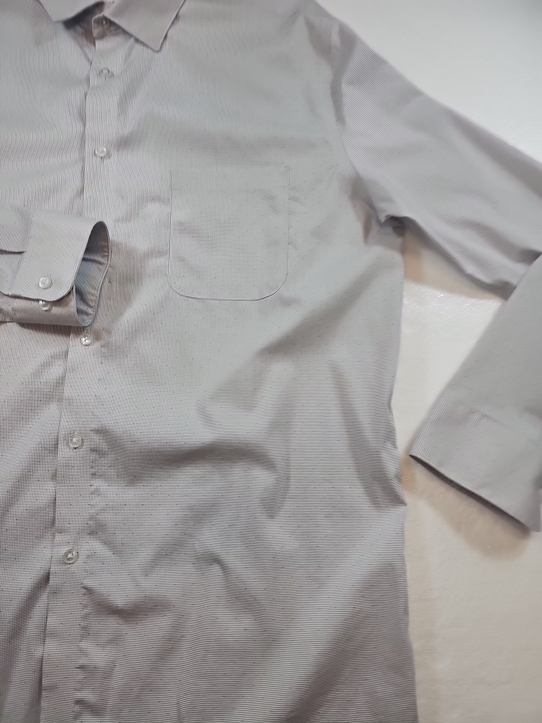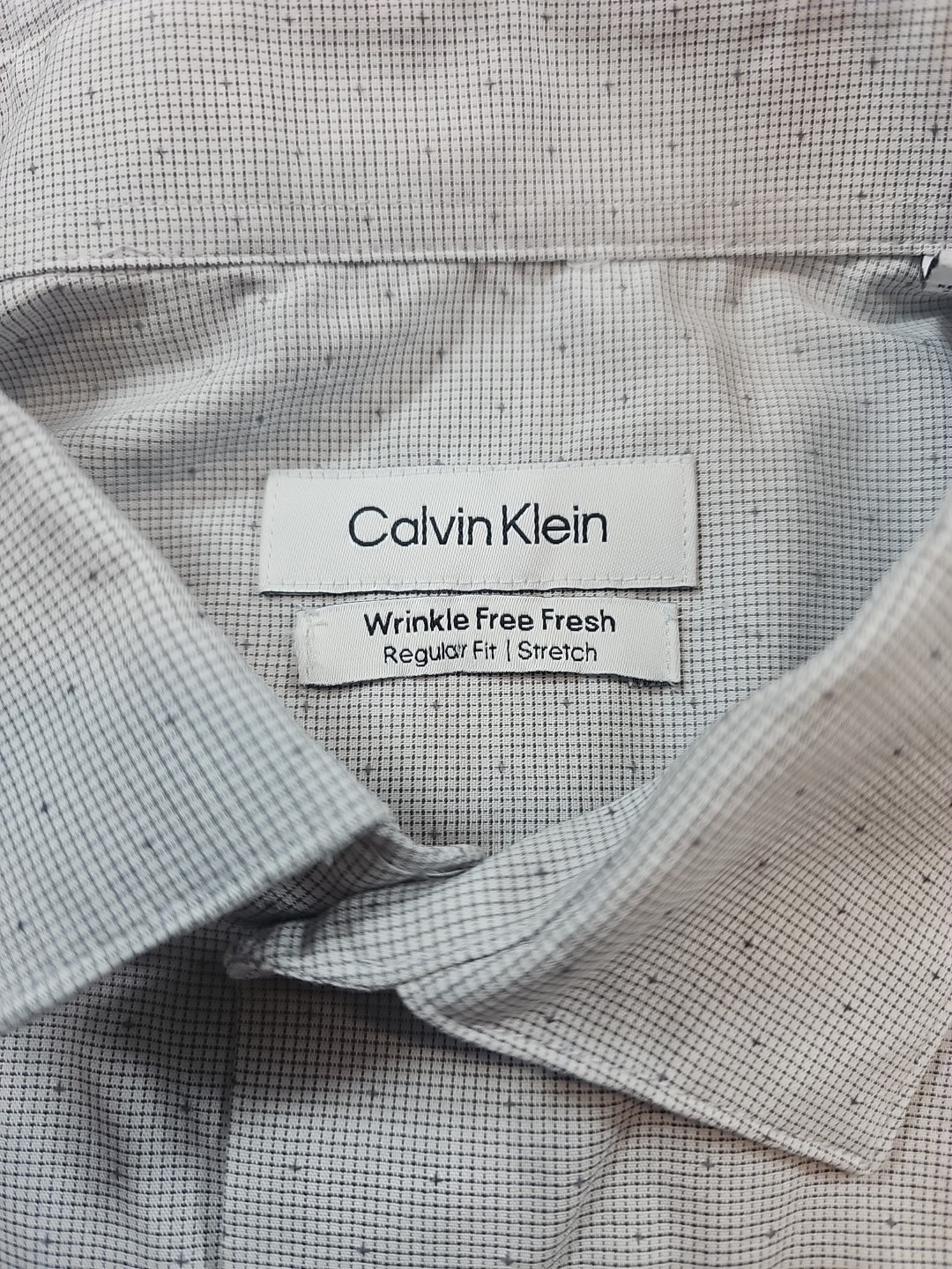 как выглядит Calvin Klein Mens 16-16.5 32/33 Large Regular Fit Stretch Gray Dress Shirt фото