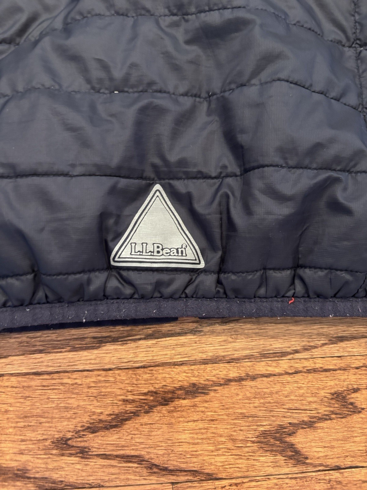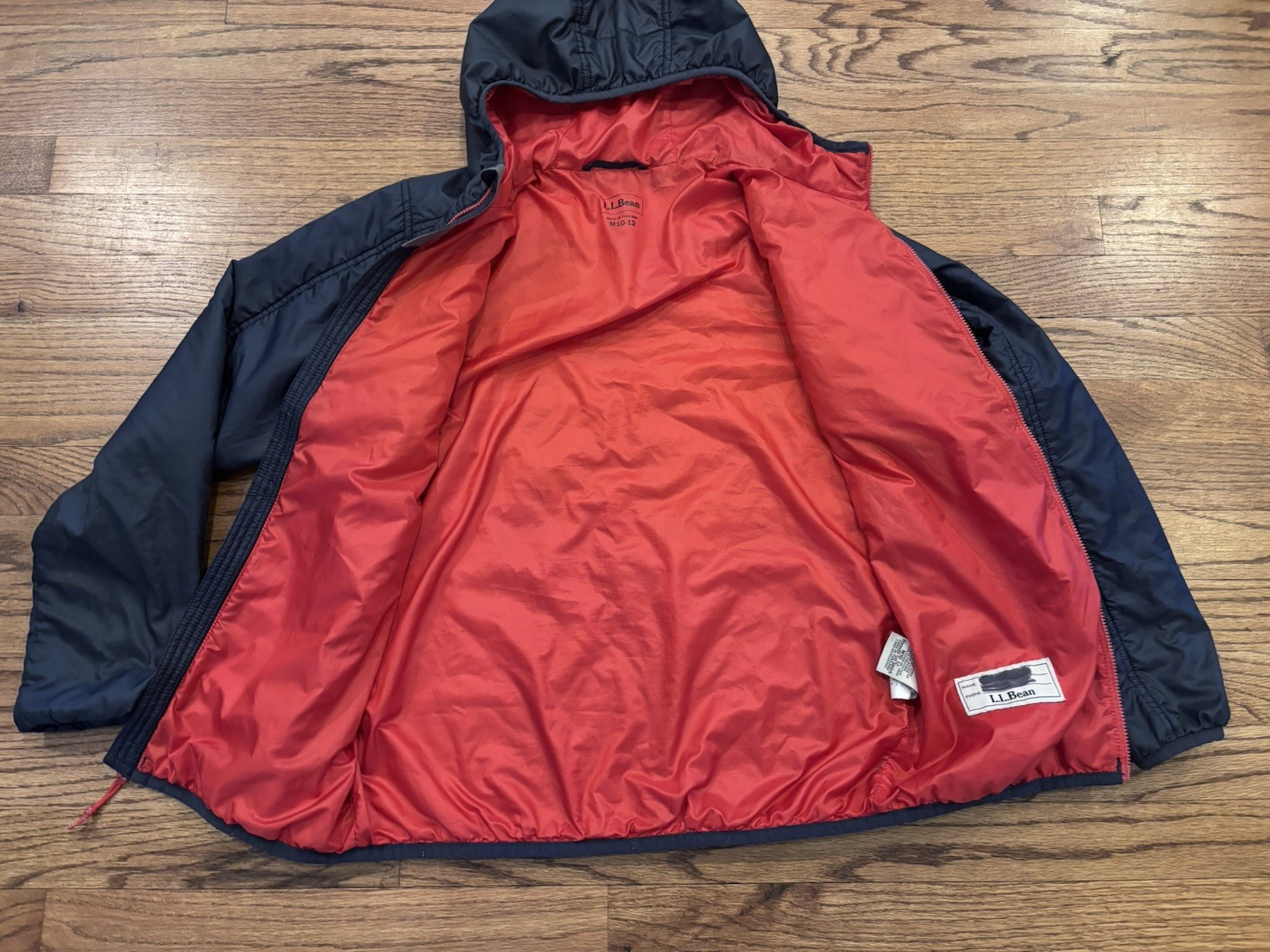 как выглядит LL Bean Puffer Jacket Youth M 10-12 Navy Hooded Full Zip Primaloft Lightweight фото