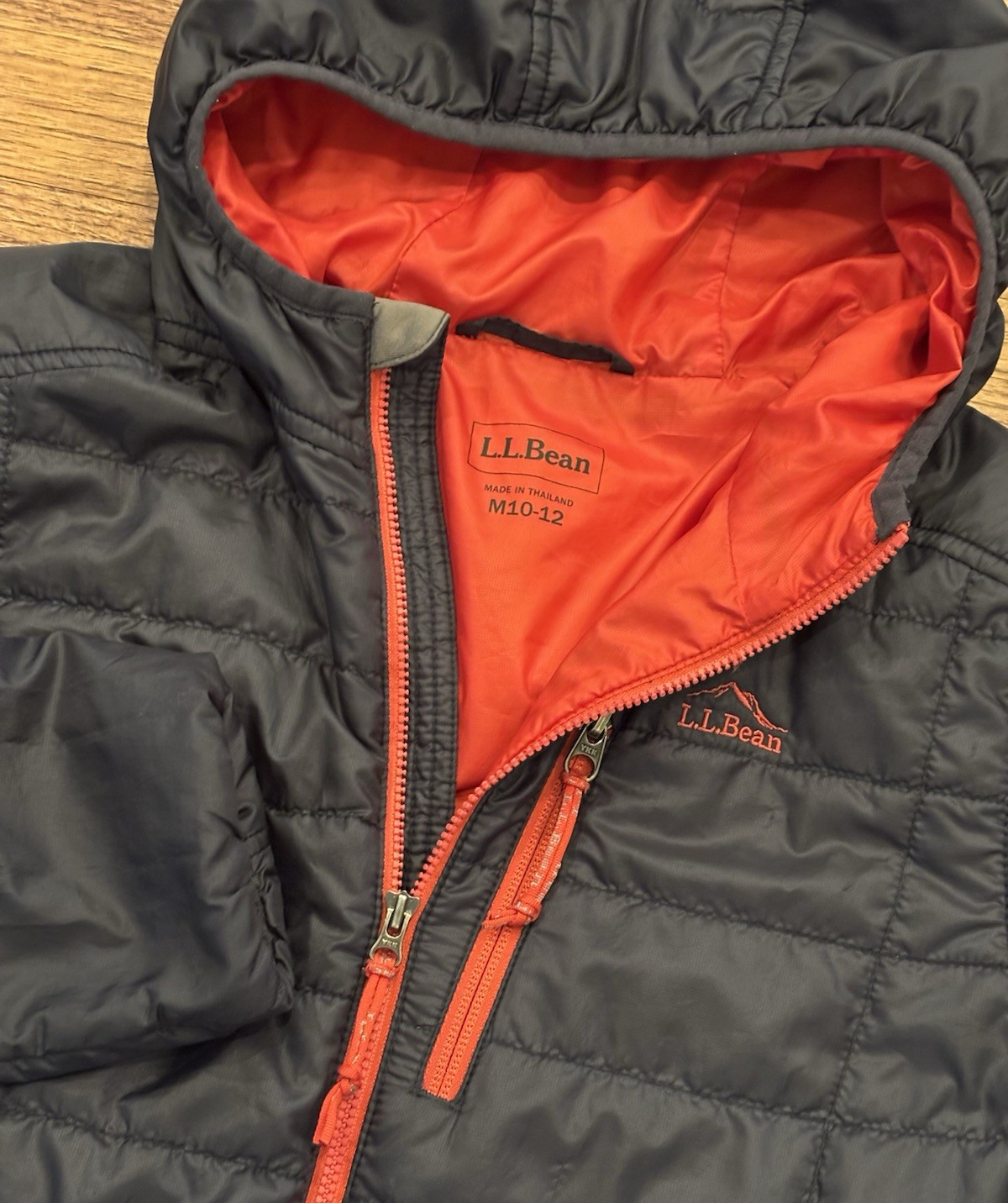 LL Bean Puffer Jacket Youth M 10-12 Navy Hooded Full Zip Primaloft Lightweight