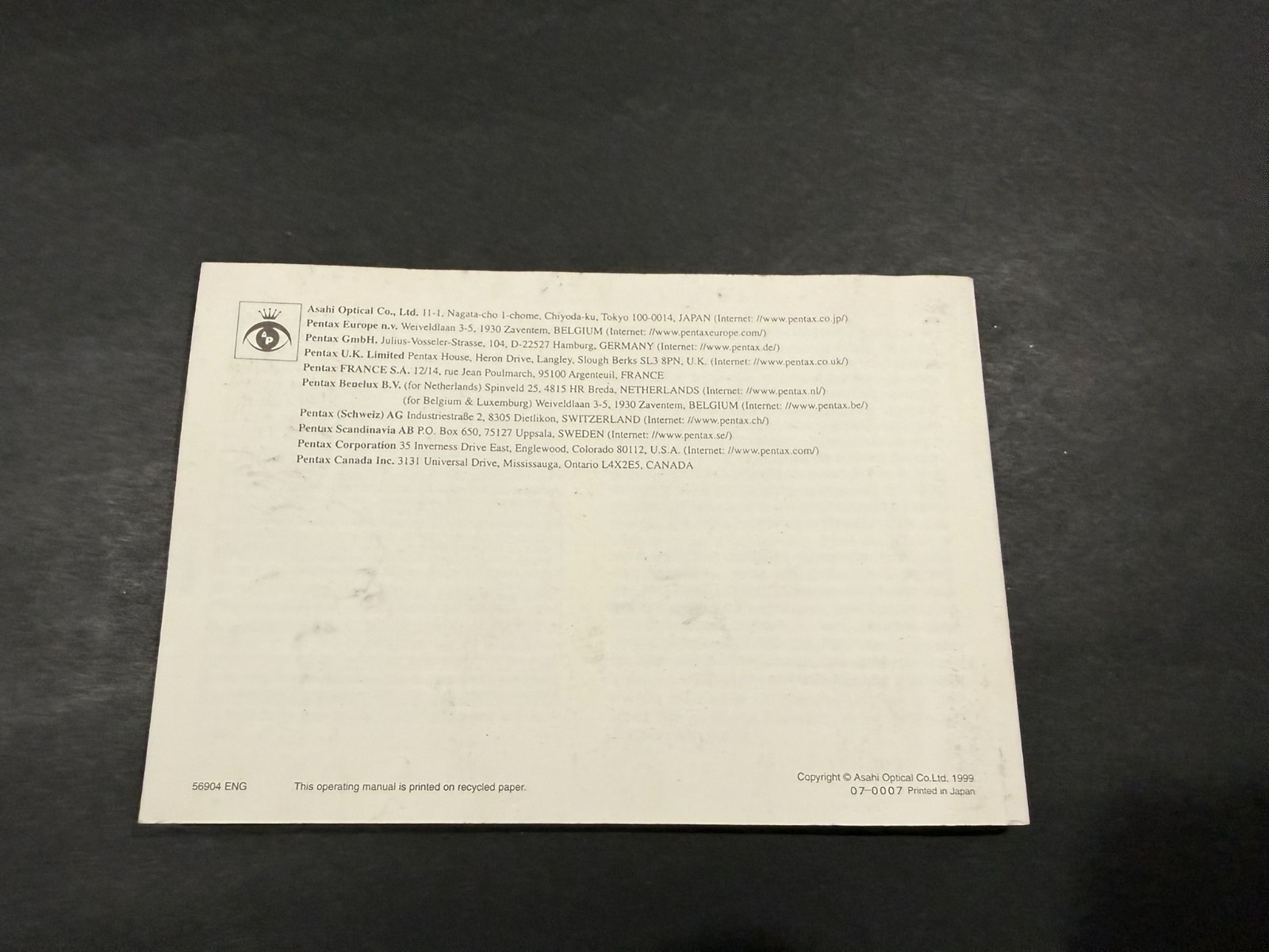 Pentax ZX-7 Camera Instructions