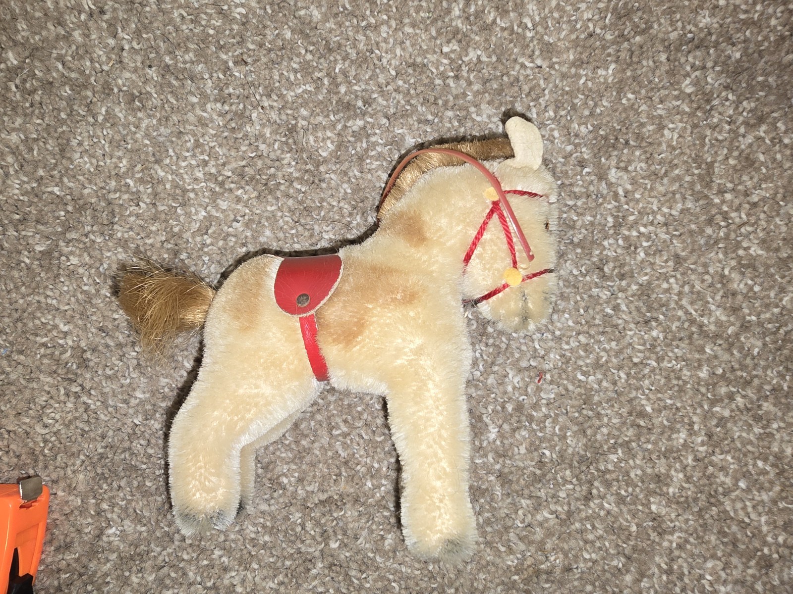 как выглядит Vintage 1960s Steiff Pinto Pony Horse Mohair Plush Stuffed Bridle 7 фото