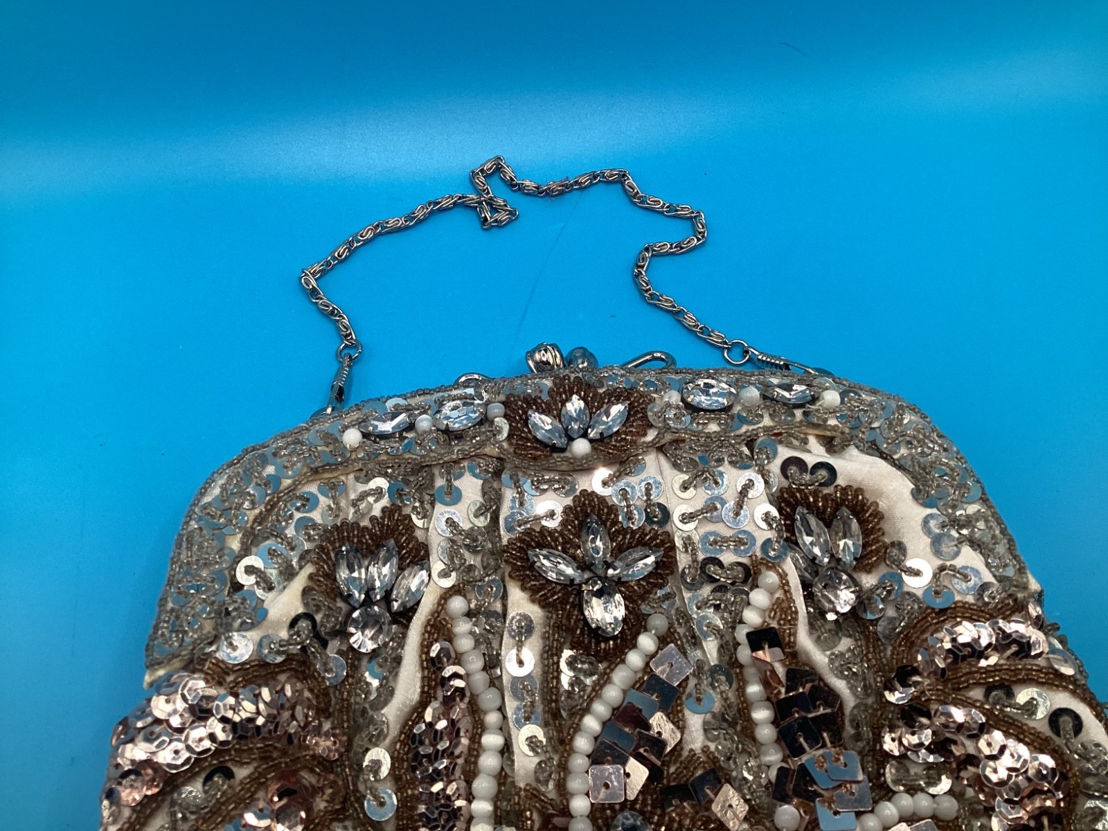 как выглядит Vintage Gold / White Womens Beaded Clutch Purse фото