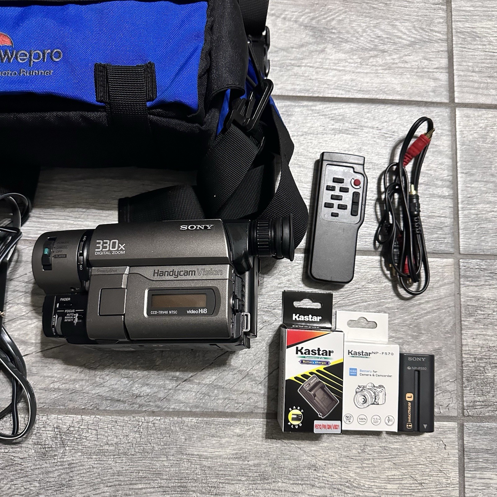 как выглядит Sony CCD-TRV46 Hi8 Cassette Handycam Vision Camcorder W/ Bag 2 Battery Charger фото