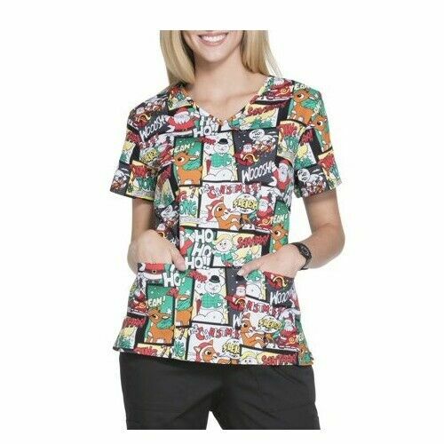 ORIGINAL RUDOLPH THE RED-NOSED REINDEER CHRISTMAS MEDICAL SCRUB TOP 2XL