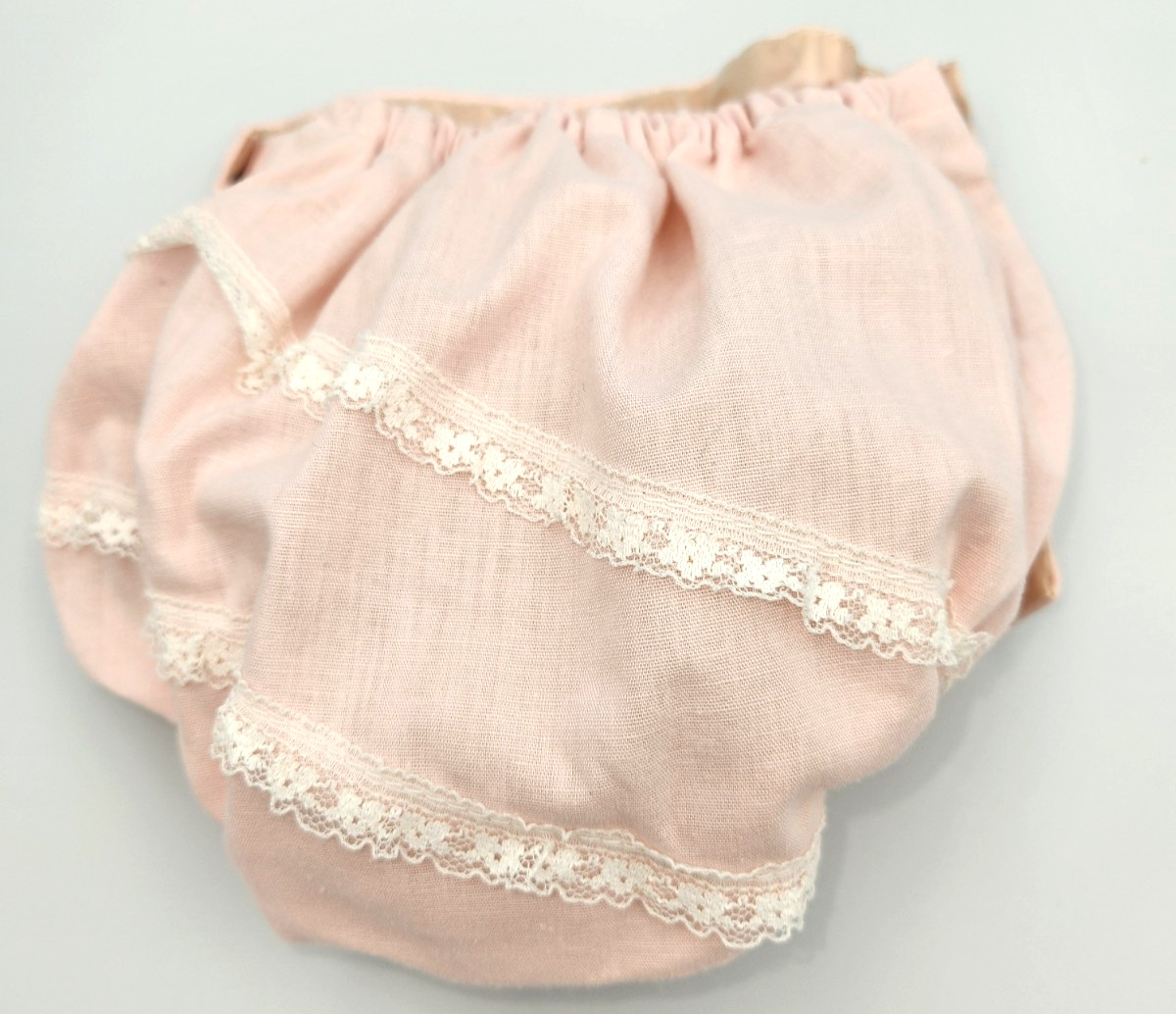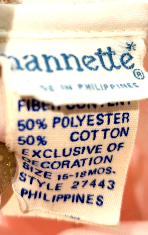 VTG Nannette Pink Apron Dress Diaper Cover 15- 18mo Baby Girl Lace w/Rosebuds