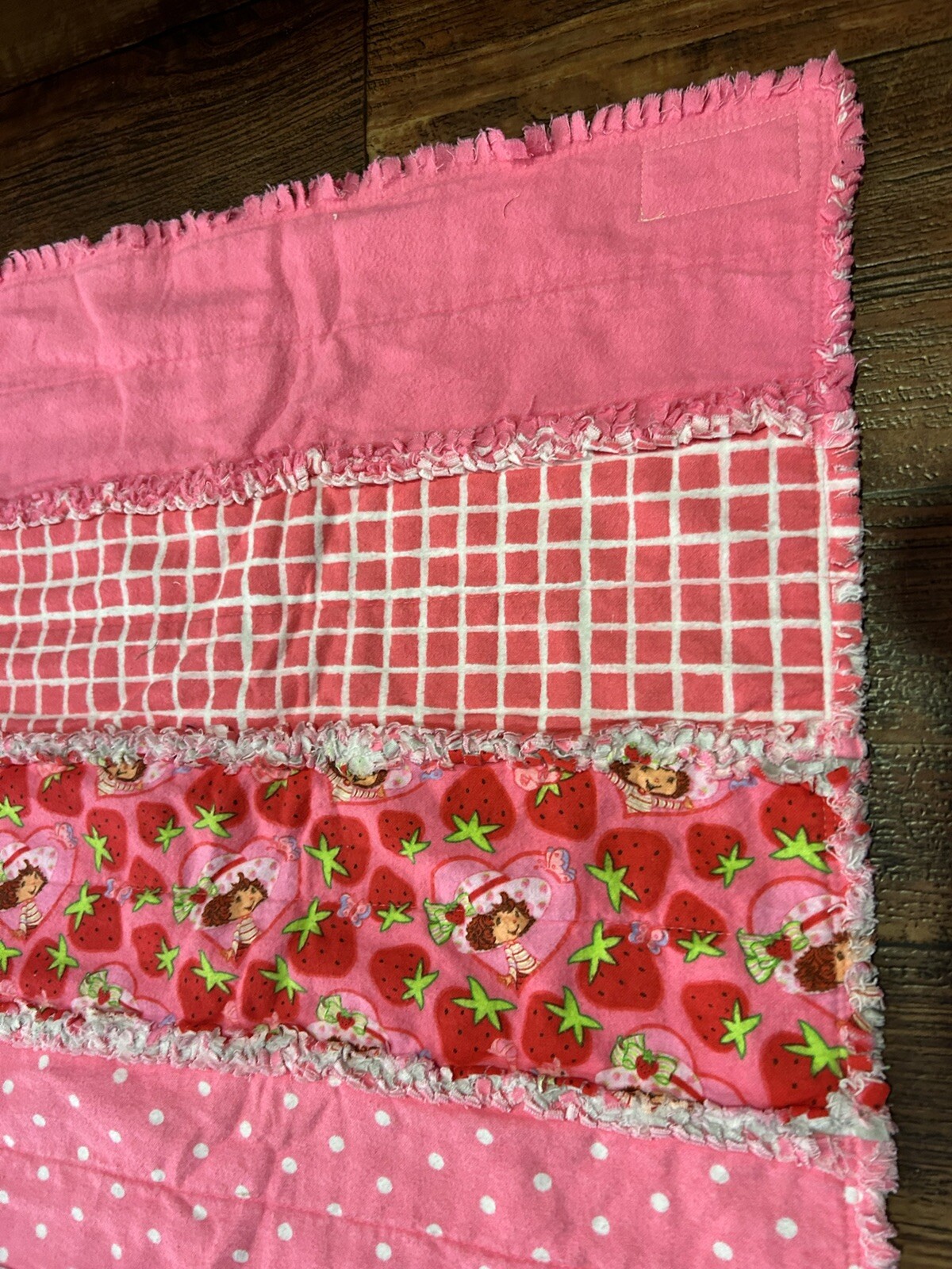 как выглядит Strawberry Shortcake Baby Blanket Handmade Quilted 36 x 44 Pink Nursery Crib фото