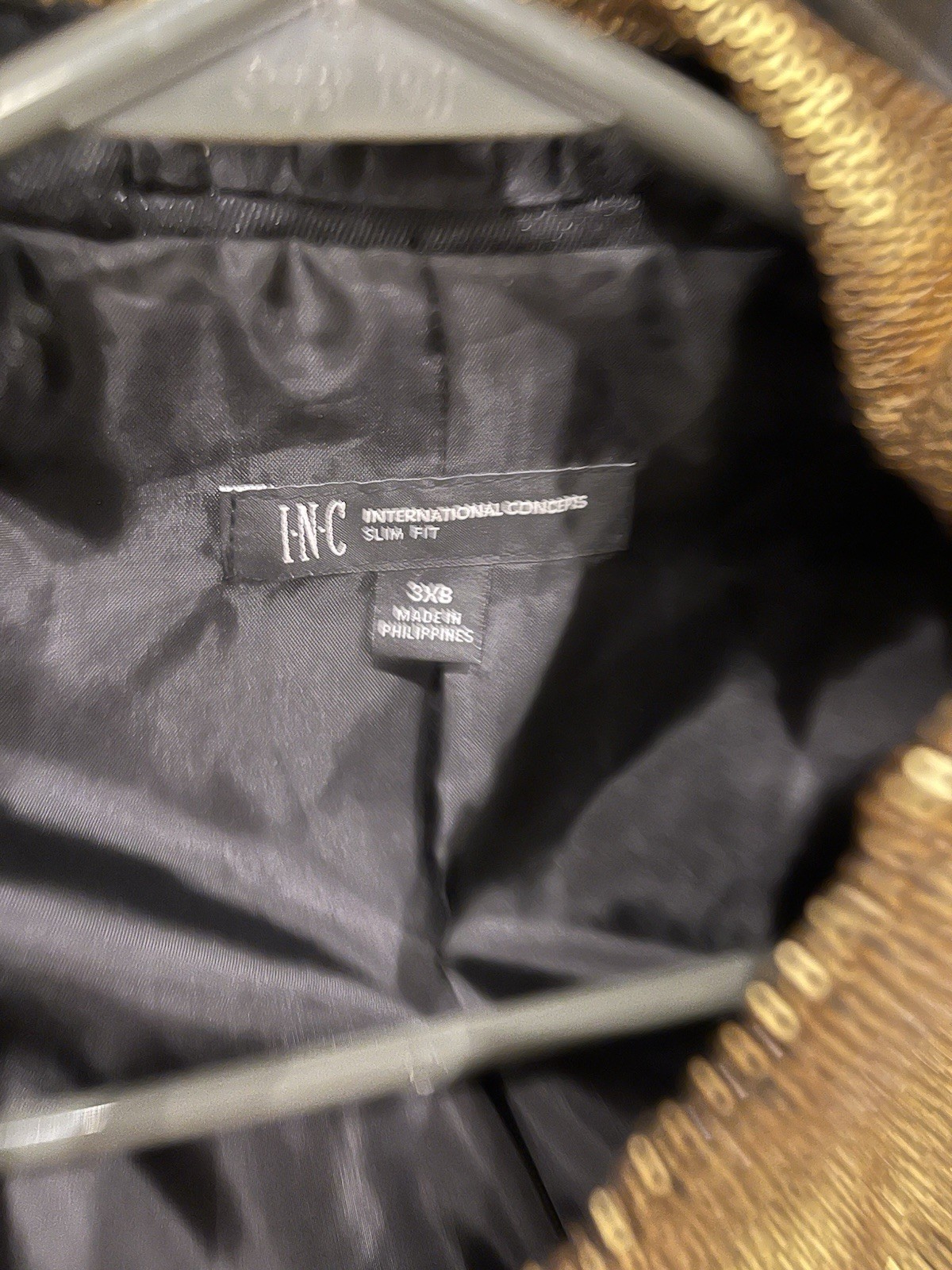 INC International Concepts Matte Gold Sequin Tuxedo Jacket Blazer Size 3XB