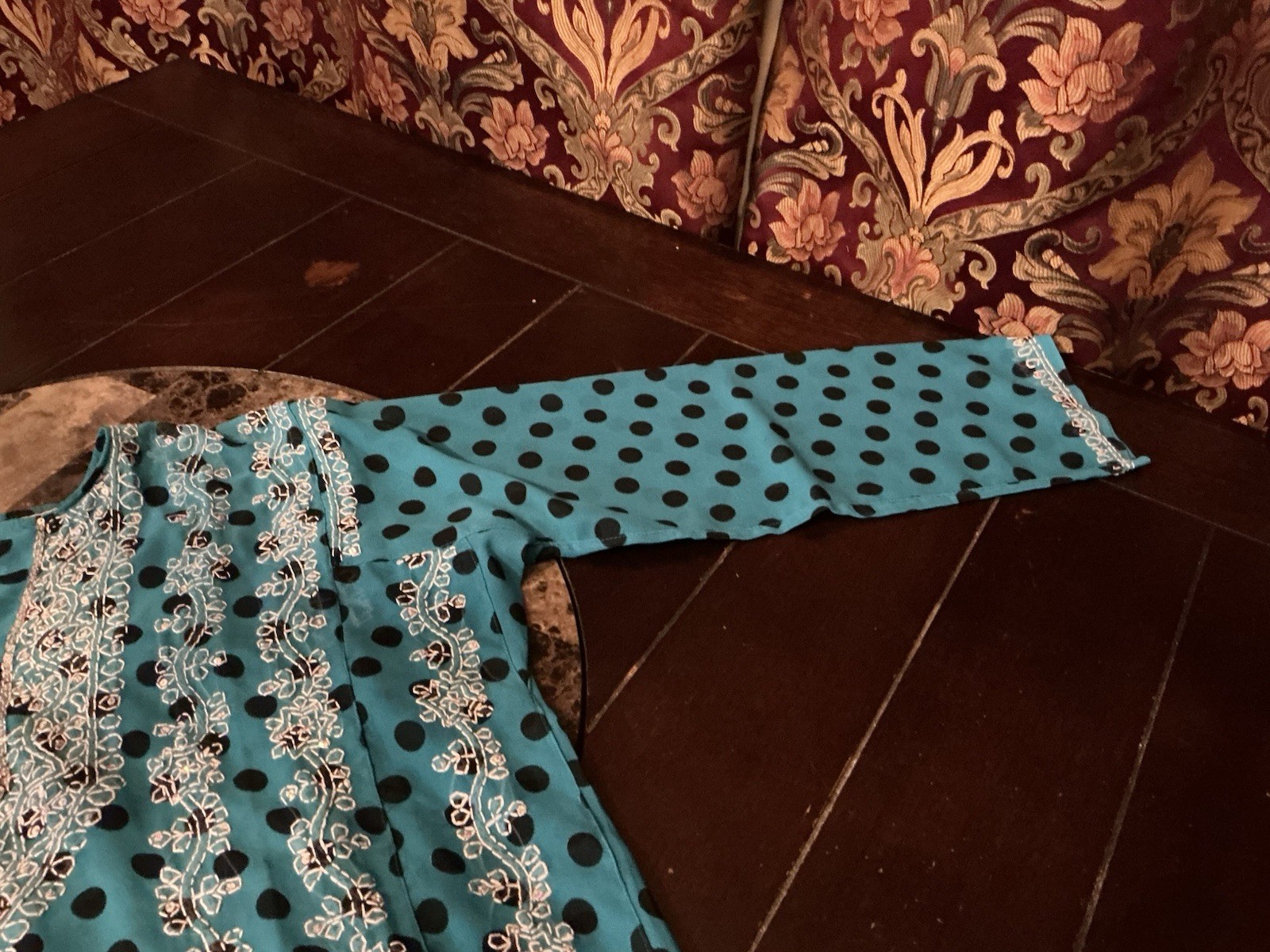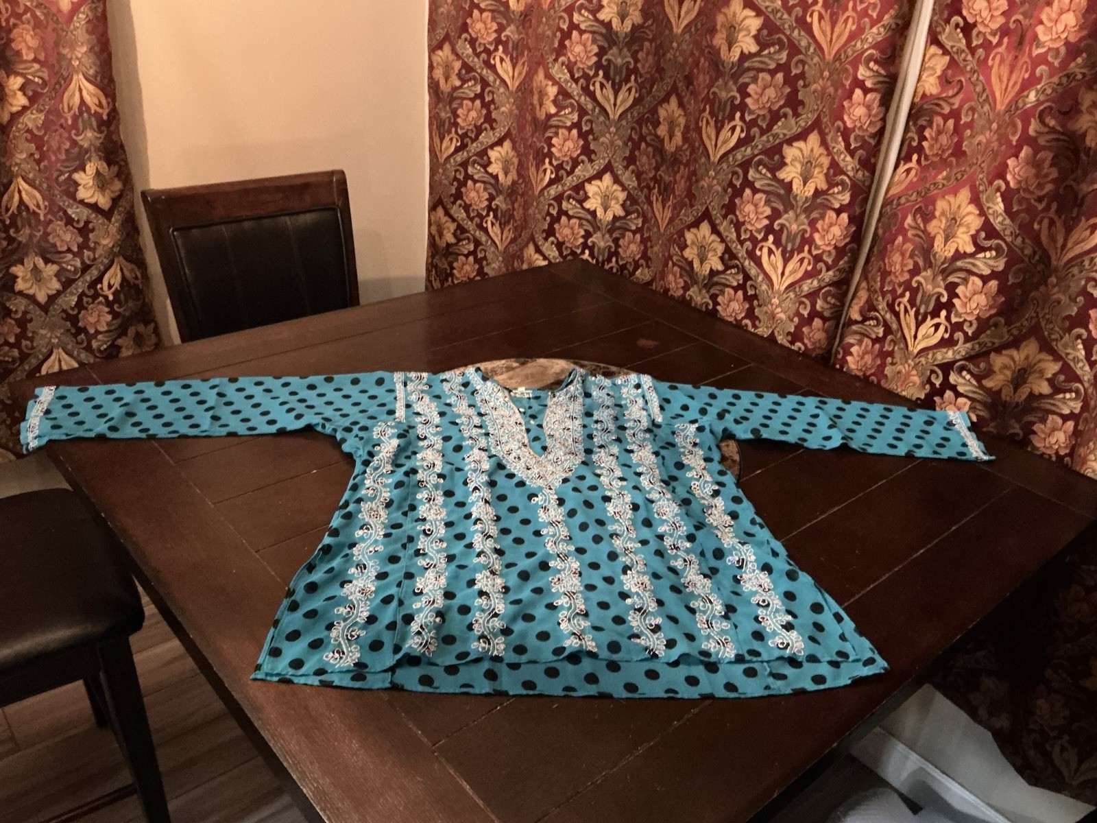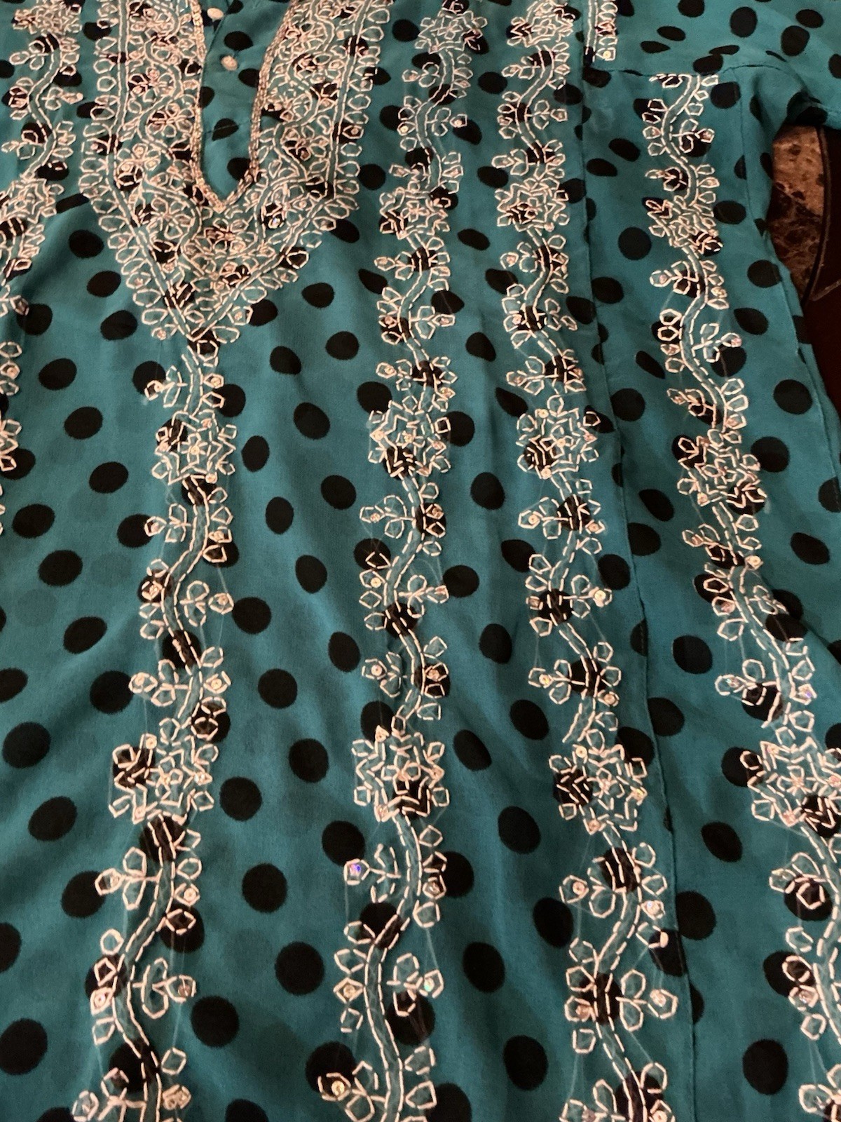 как выглядит Polyester Chiffon Sequined Blue Indian Kurta Kurti Top, 46 Bust, 28 Long, New фото