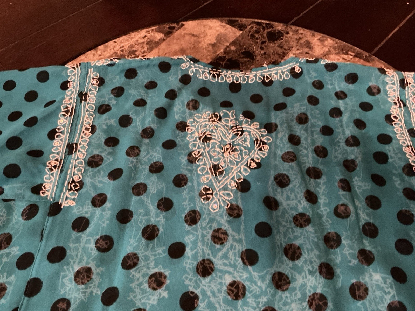 Polyester Chiffon Sequined Blue Indian Kurta Kurti Top, 46 Bust, 28 Long, New
