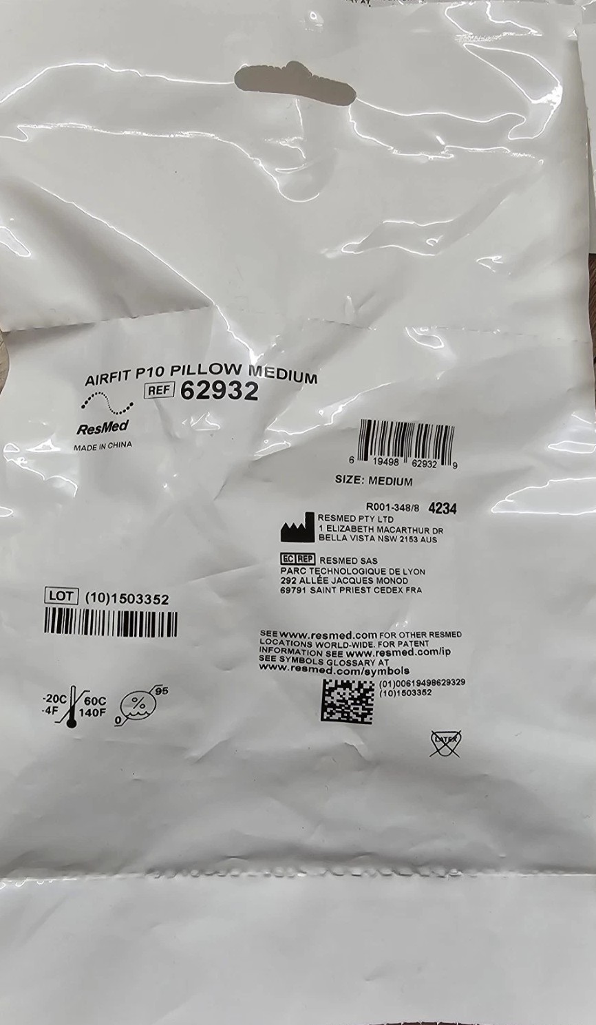 4 Packs NEW IN SEALED BAG ResMed AirFit P10 Nasal Pillow MEDIUM 62932