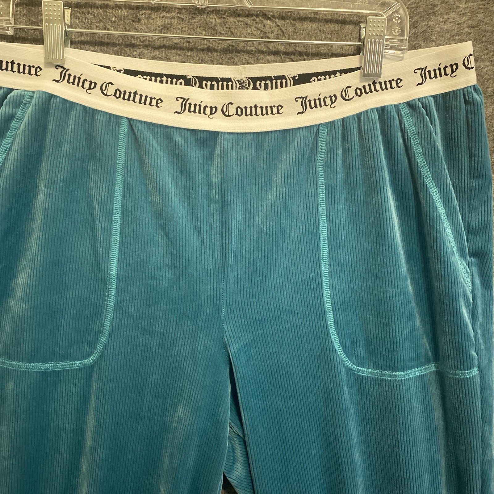 как выглядит Y2K Juicy Couture Pants Womens XL Blue Velour Sleepwear Rhinestone Lounge Bling фото