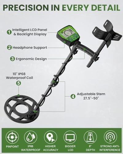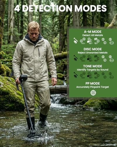 High Accuracy Metal Detector - 4 Modes, 10 Waterproof Coil, DSP Chip for Gold