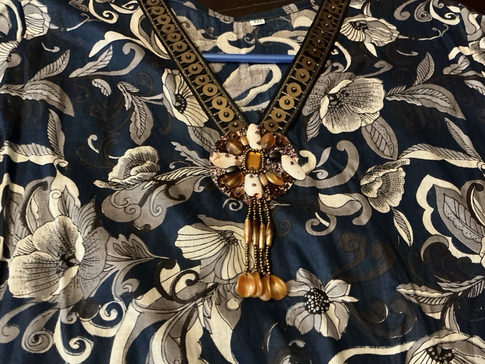 Sequined Blue Cotton Floral Kurta Kurti Top, Long Sleeve, 34 Long, 46 Bust,