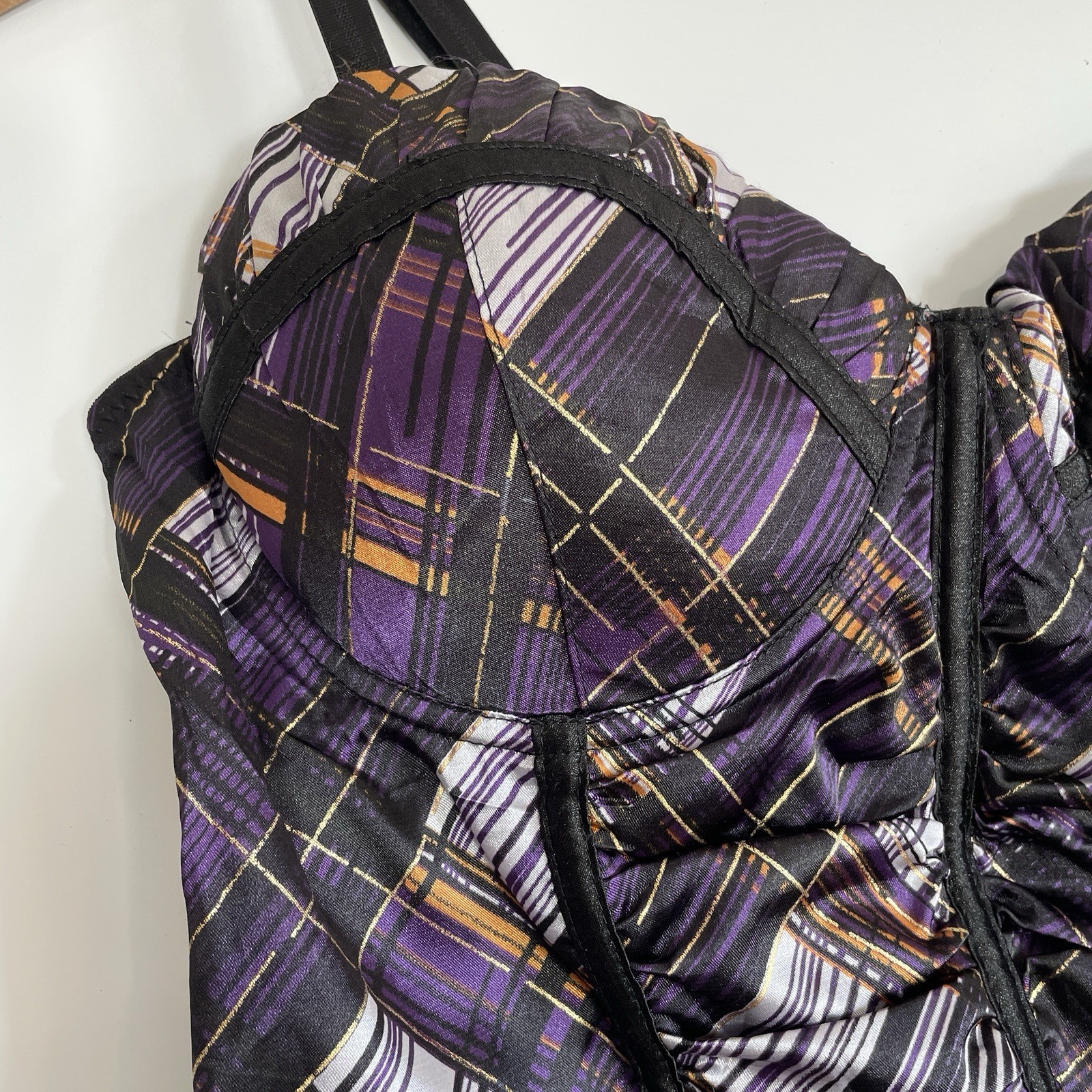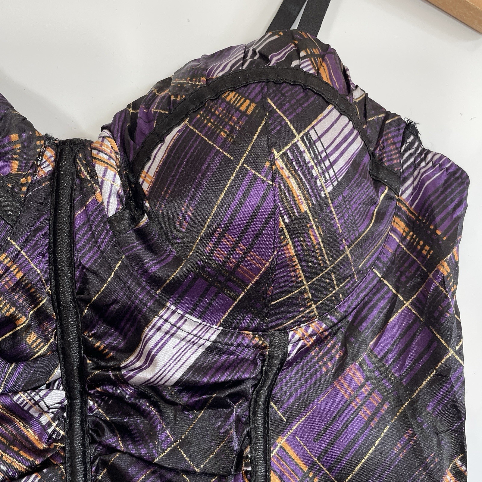 как выглядит Entry Corset Ladies Basque Plaid Satin Convertible Purple Black Size L фото