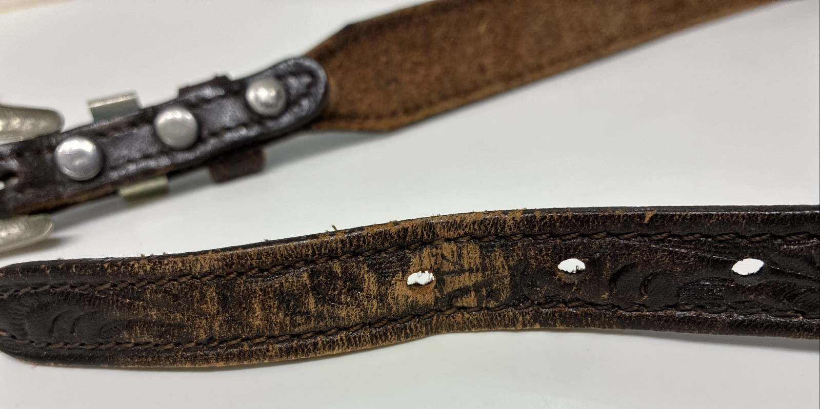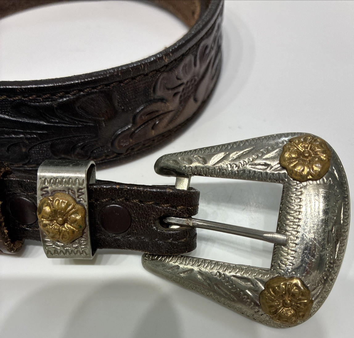 Genuine Leather Belt Brown Western Embossed Floral Size 32 Buckle Child Girl