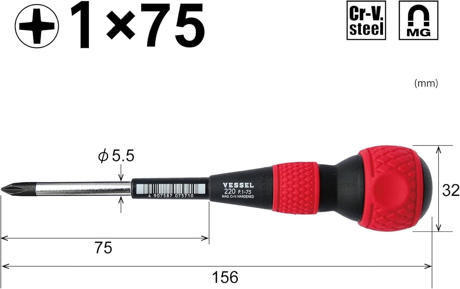 Professional Magnetic Philips Screwdriver 1 x 75 - Chrome Vanadium Steel