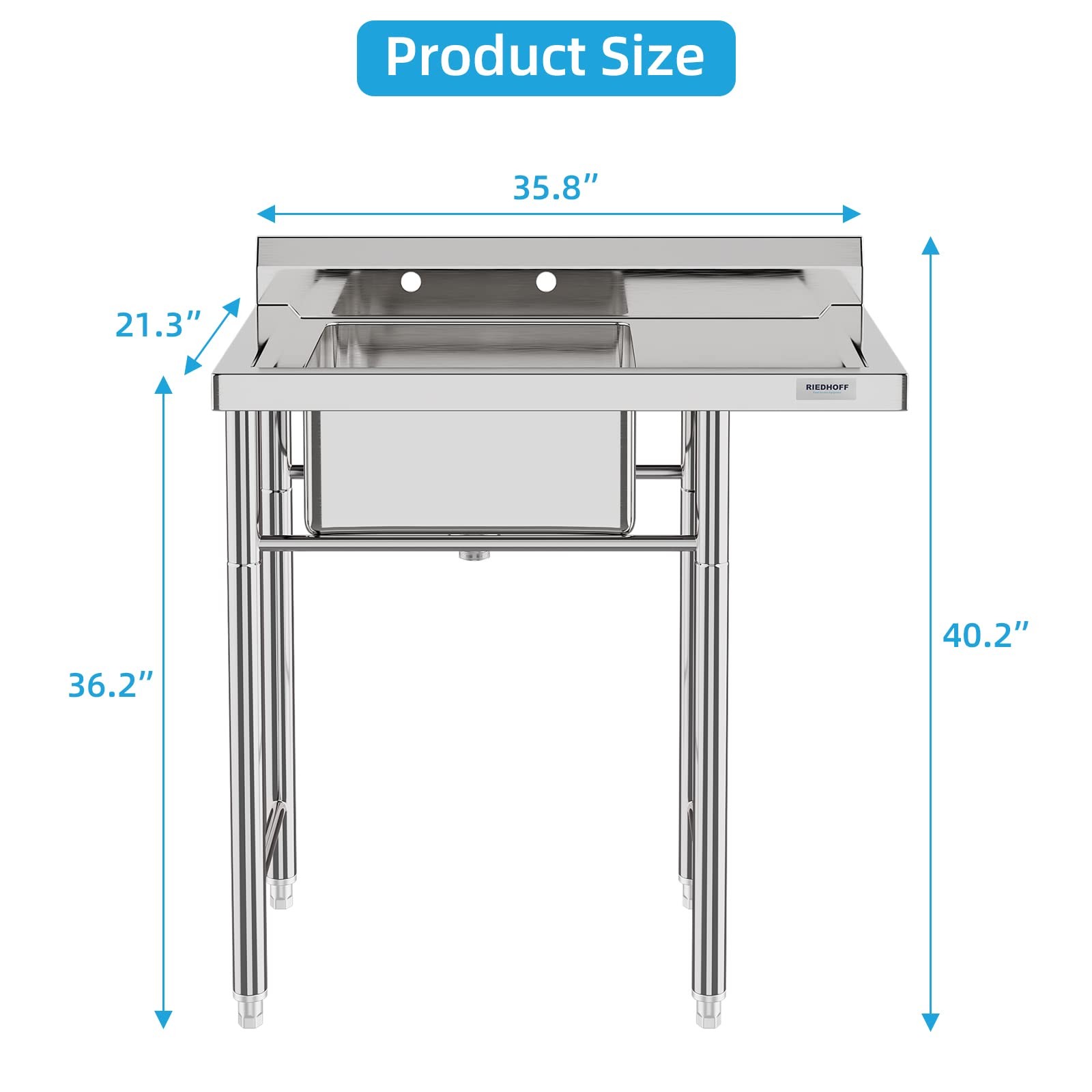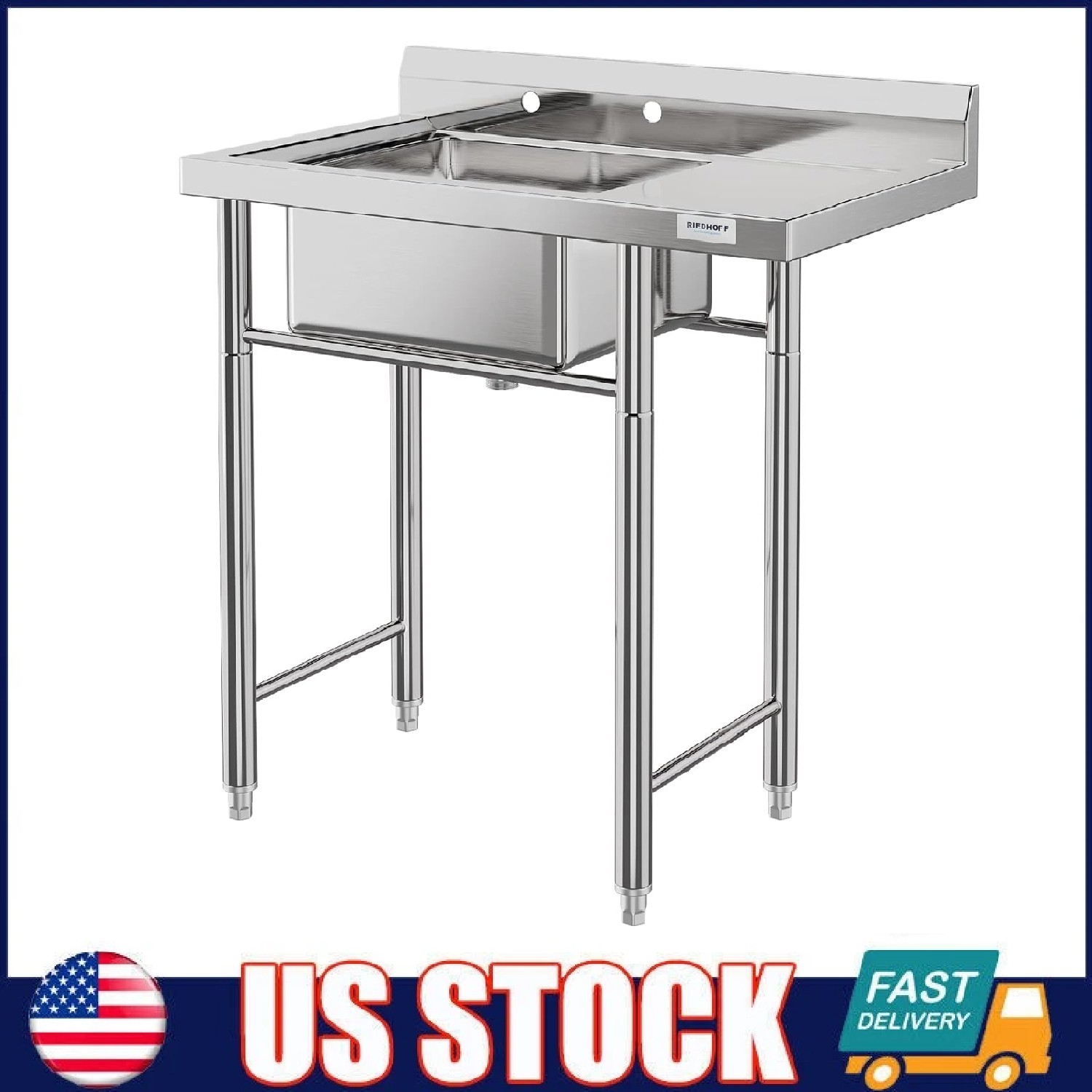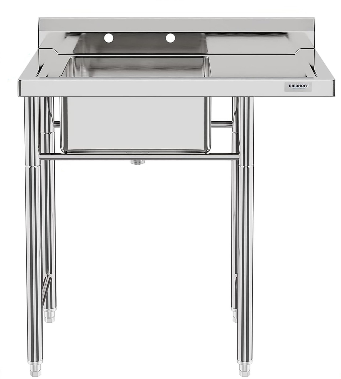 Stainless Steel Utility Sink, Free Standing Single Bowl Kitchen Laundry Sink