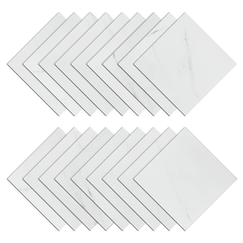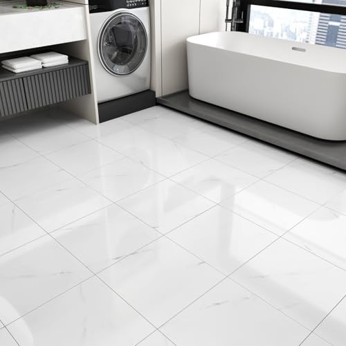 18PCS Glossy Marble White Peel and Stick Floor Tiles - Waterproof 12x12 Inch Sel