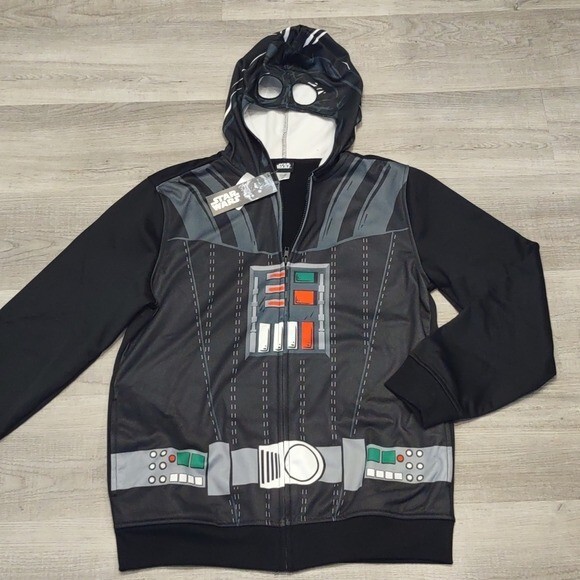 Star Wars Darth Zip Vader Jacket HOODIE Mask Sweatshirt Easy Halloween Costume M