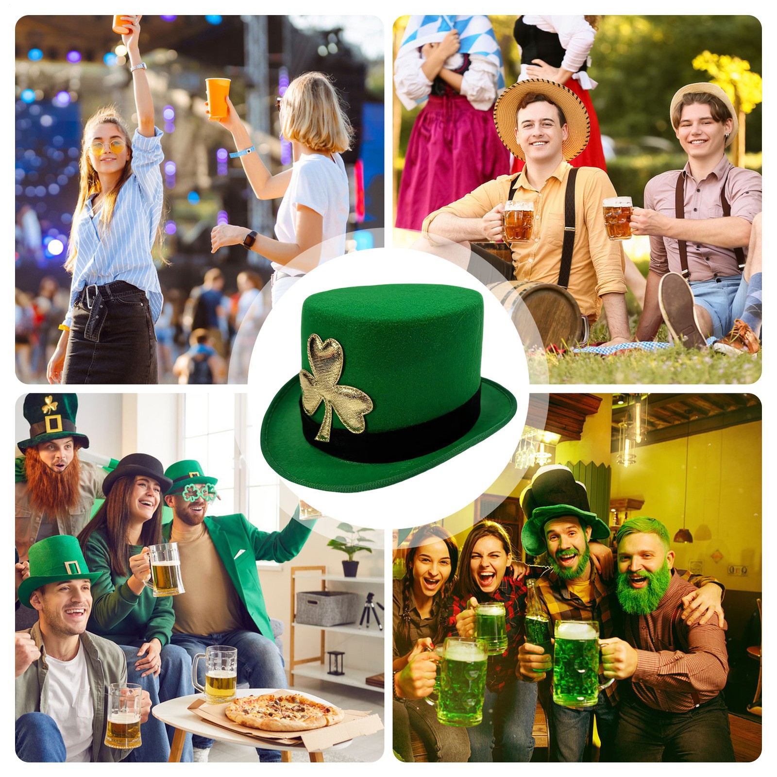 как выглядит St. Patricks Day Top Hat Green Satin With Buckle Adult Leprechaun Costume Hat фото