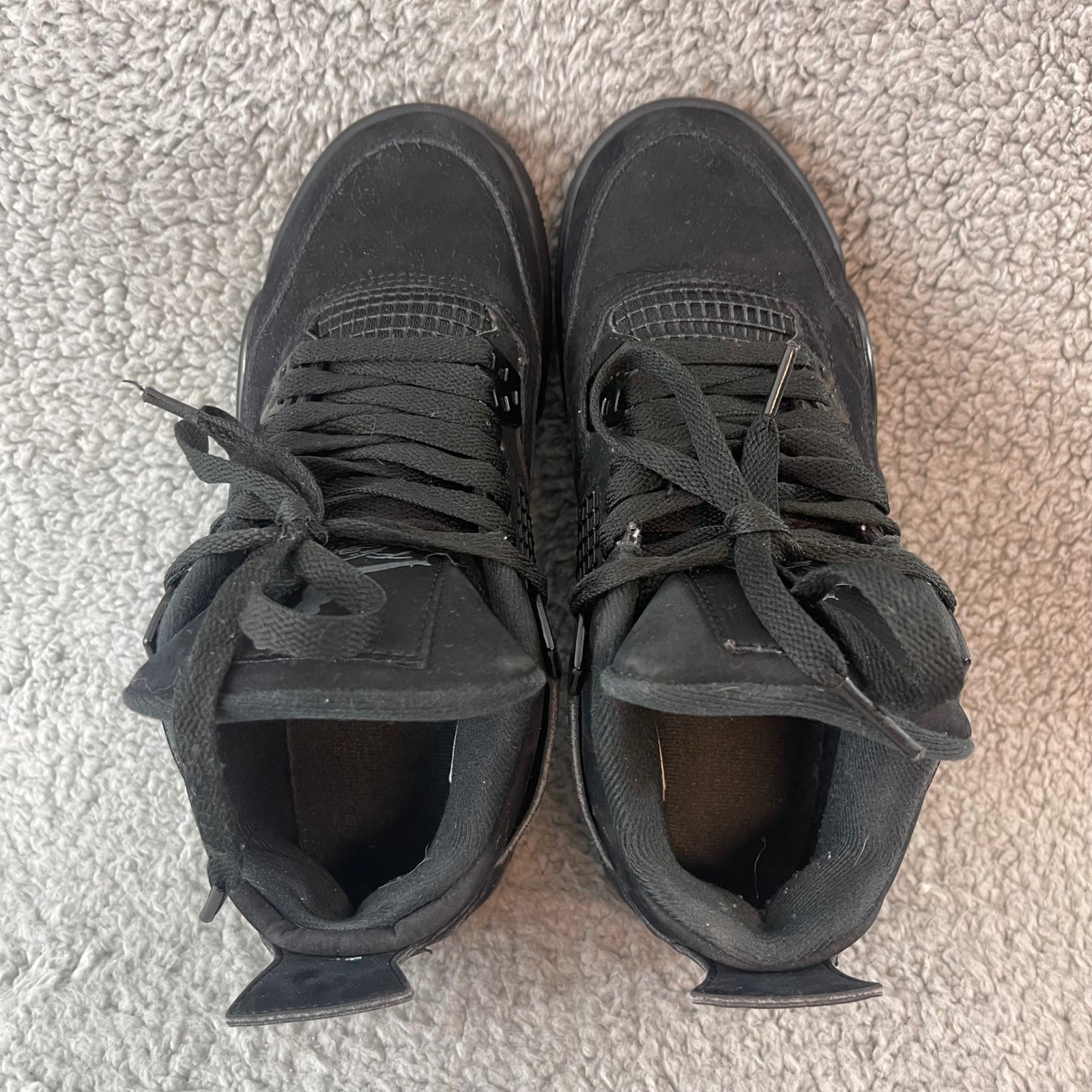 как выглядит Jordan 4 Retro Black Cat 2020 Kids Size 5Y Triple Black Sneakers 408452-010 фото