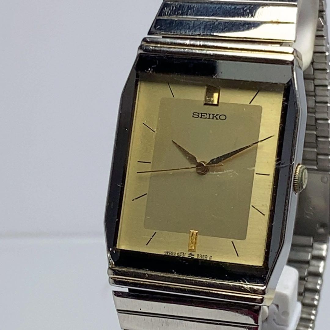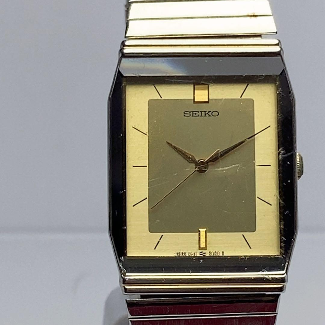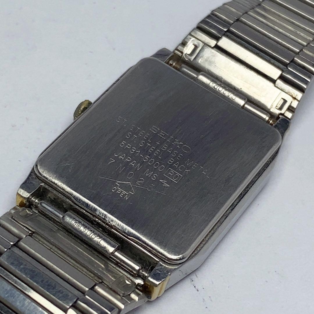 Seiko Quartz Watch Gold Dial Vintage 5P31 5000 Stainless Band wrist 21cm