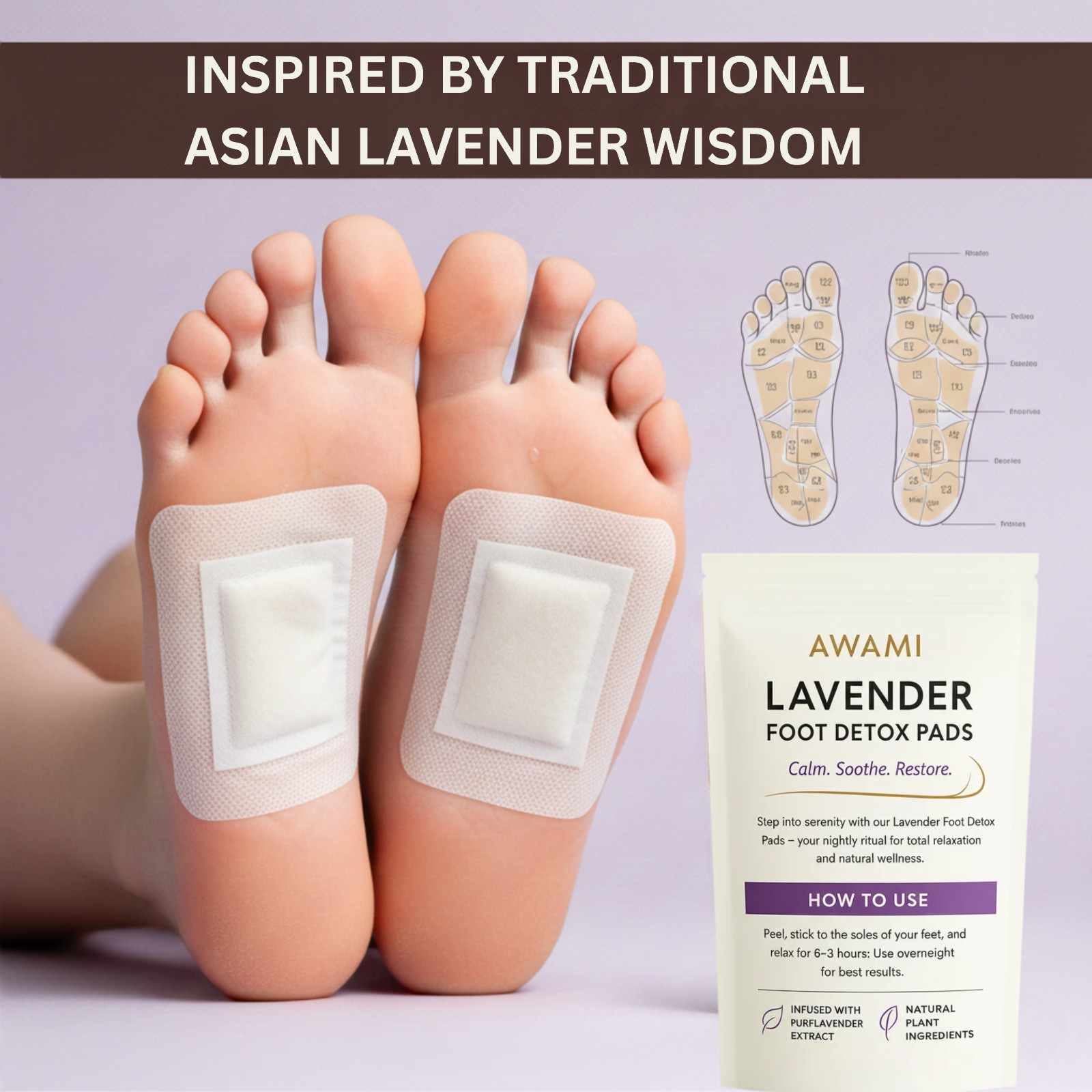 как выглядит Awami Levender Premium Detox Foot Pads Deep Cleansing Foot Patches 10 Patches фото