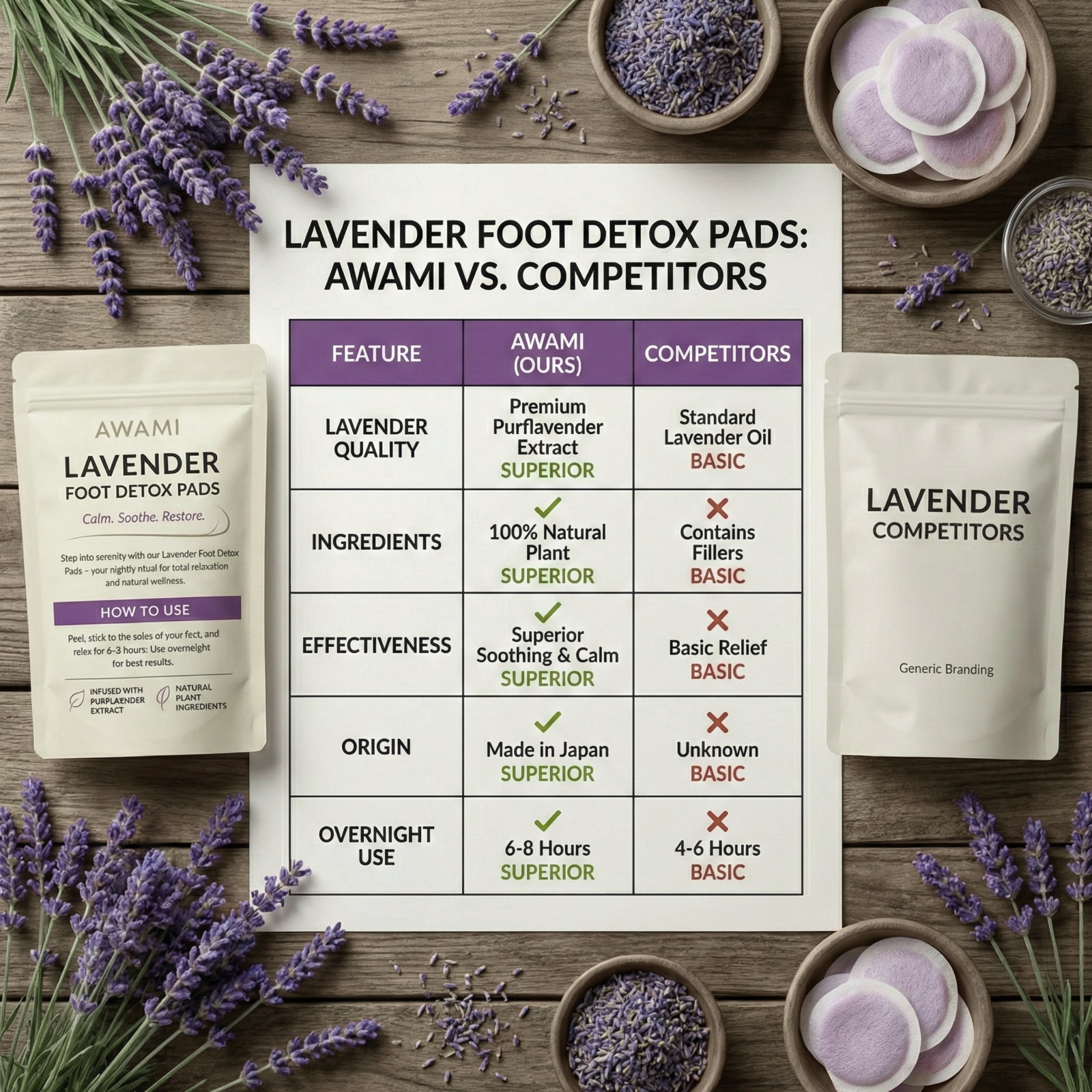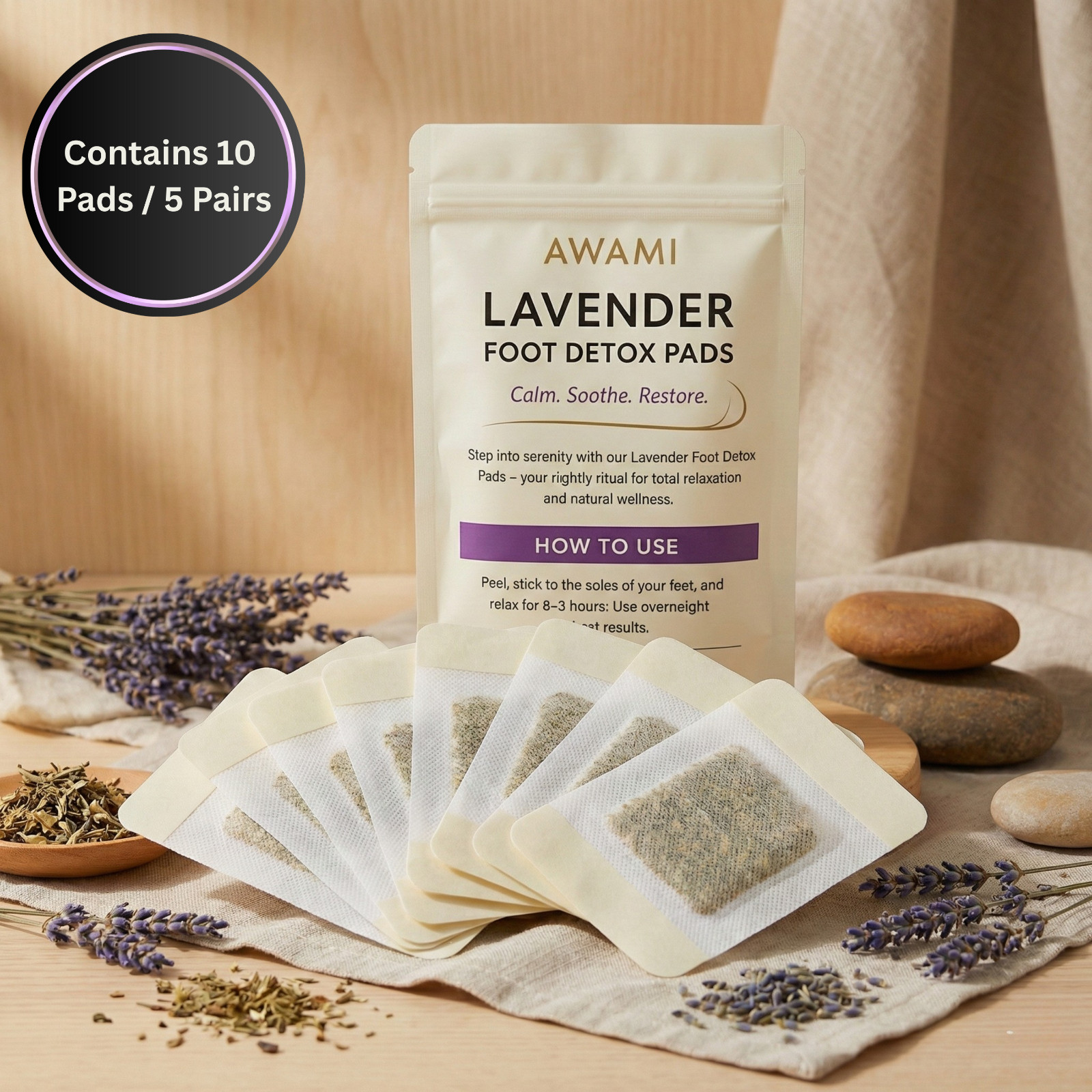 Awami Levender Premium Detox Foot Pads Deep Cleansing Foot Patches 10 Patches
