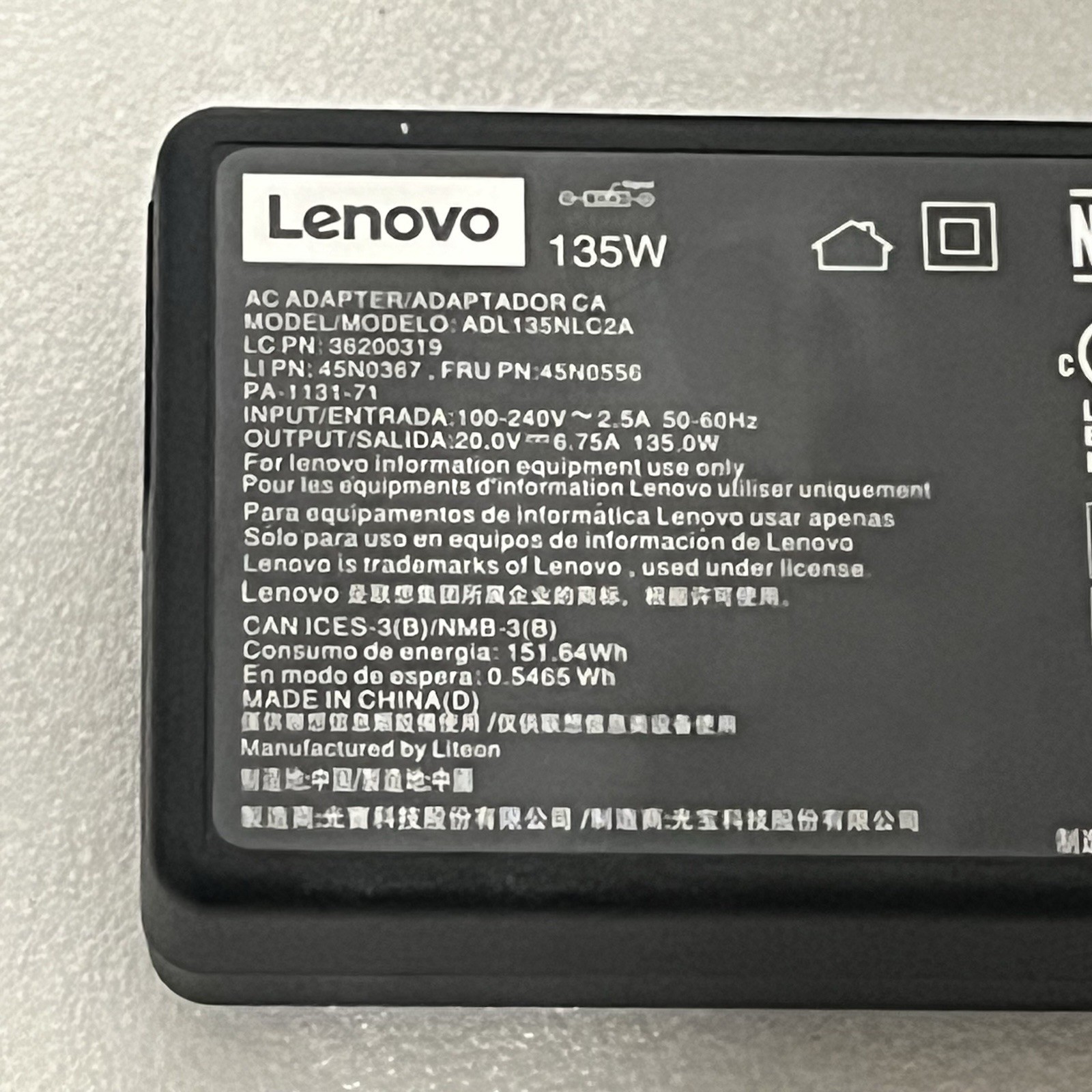 как выглядит LENOVO ADL135NLC2A 20V 6.75A 135W Genuine Original AC Power Adapter Charger фото