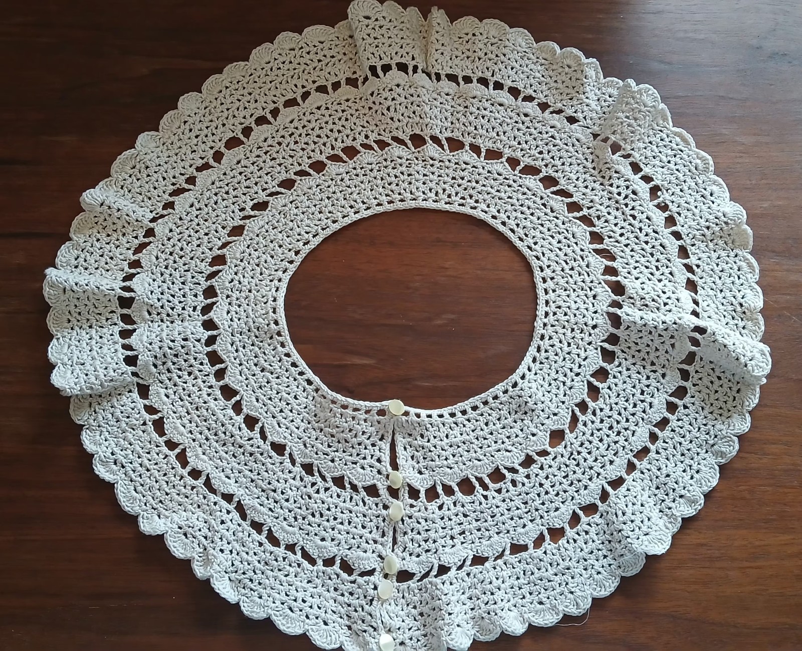 как выглядит Vintage Crocheted Cotton Lace Detachable Collar. Cream. Button Closure. фото
