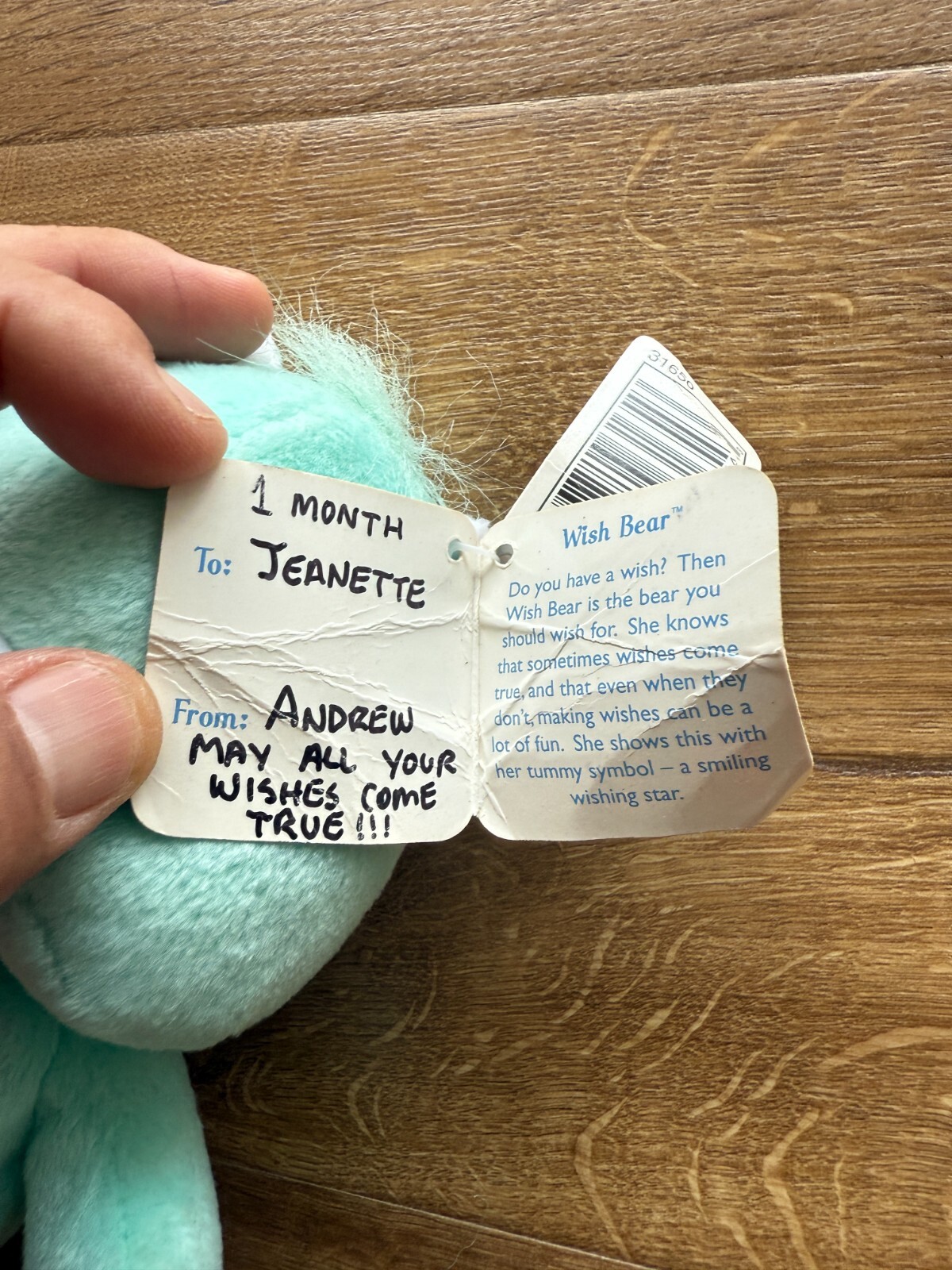 как выглядит 2002 Care Bears Wish Bear Plush Writing in Tag Excellent фото