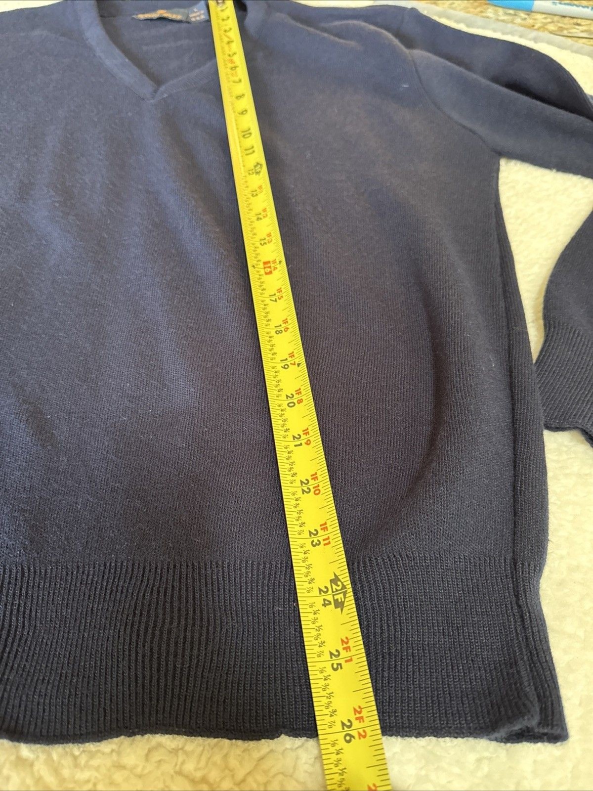 как выглядит Vintage Robert Bruce V Neck Sweater Mens Large Blue Knit Ribbed Trim Made USA фото
