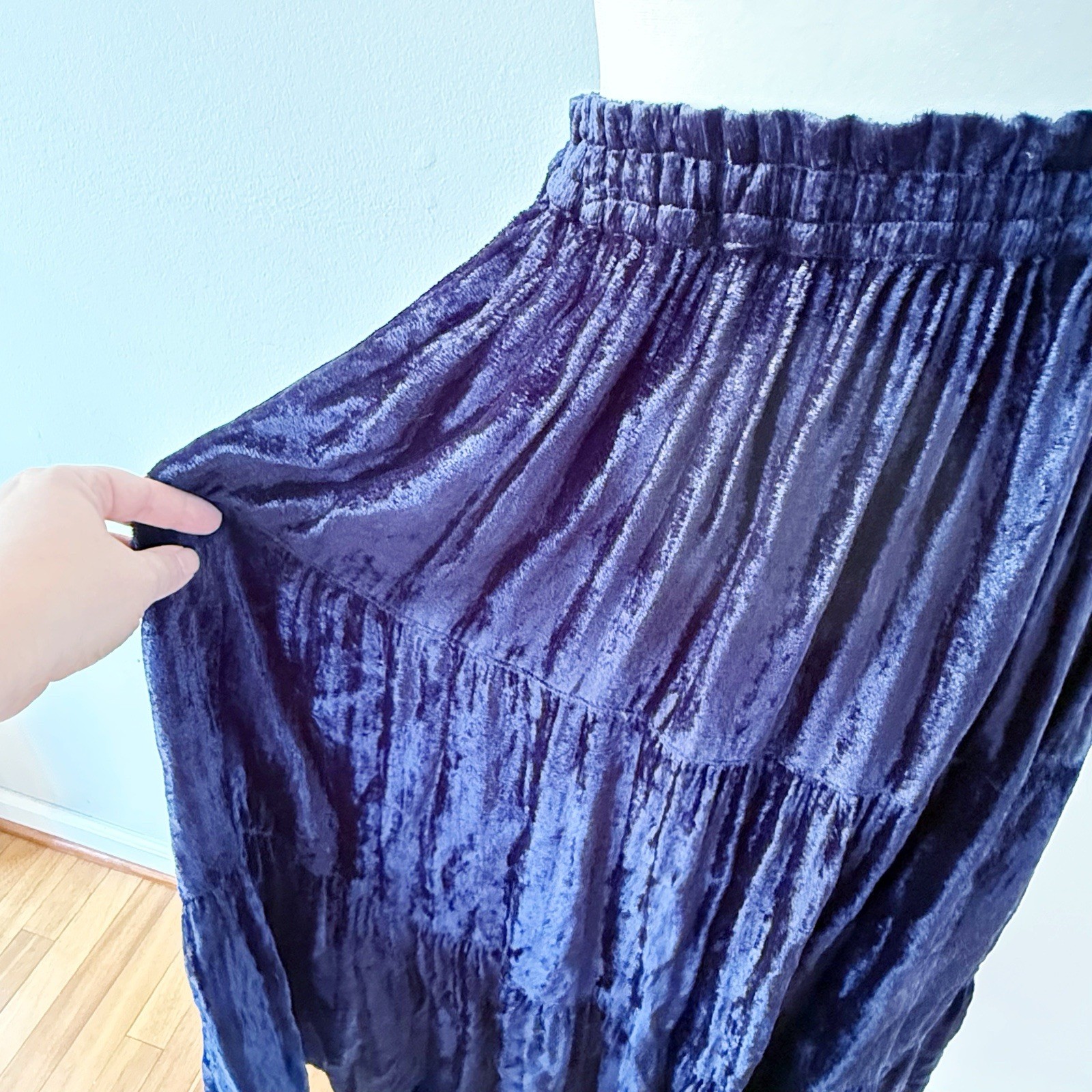 как выглядит Vintage Women Velvet Tiered Maxi Skirt Large Boho Gypsy Hippie Whimsigoth Fairy фото