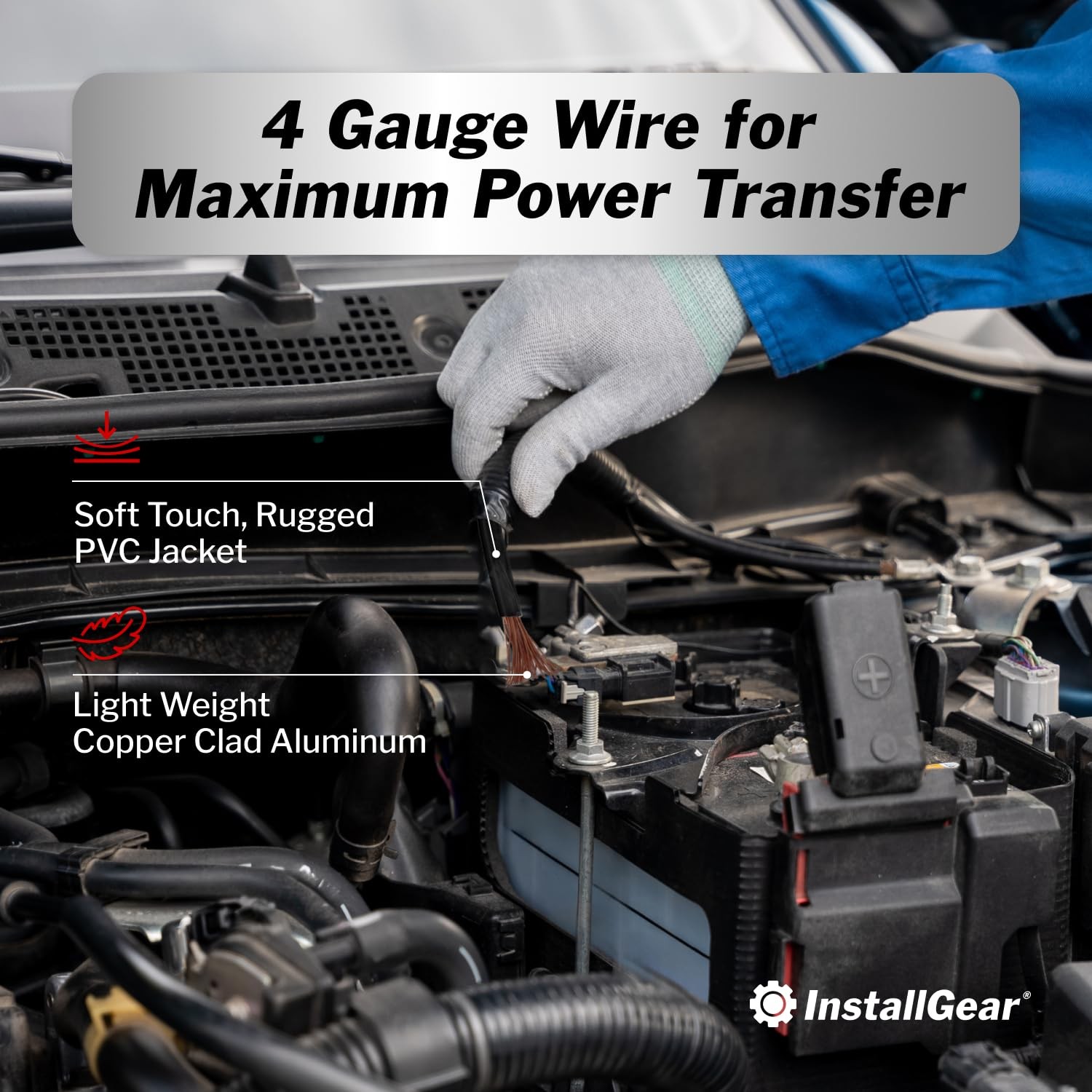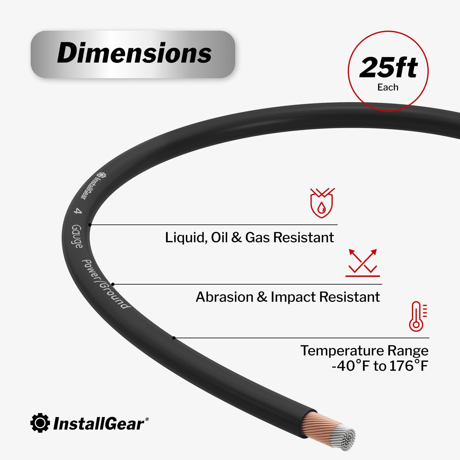 InstallGear 4 Gauge Wire Car Audio Battery Cable - 25 ft CCA 4 Gauge, Black