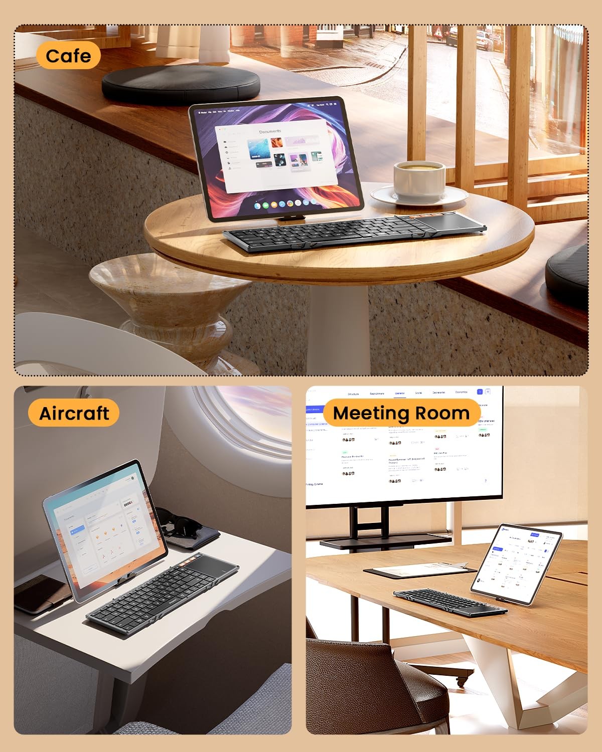 Foldable Bluetooth Keyboard with Touchpad, Portable Full Size Keys for Travel