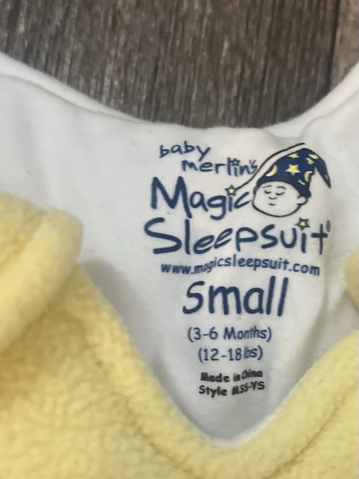Baby Merlin's Magic Sleep Suit Size Small 3-6 Months 12-18 lbs Yellow Cotton