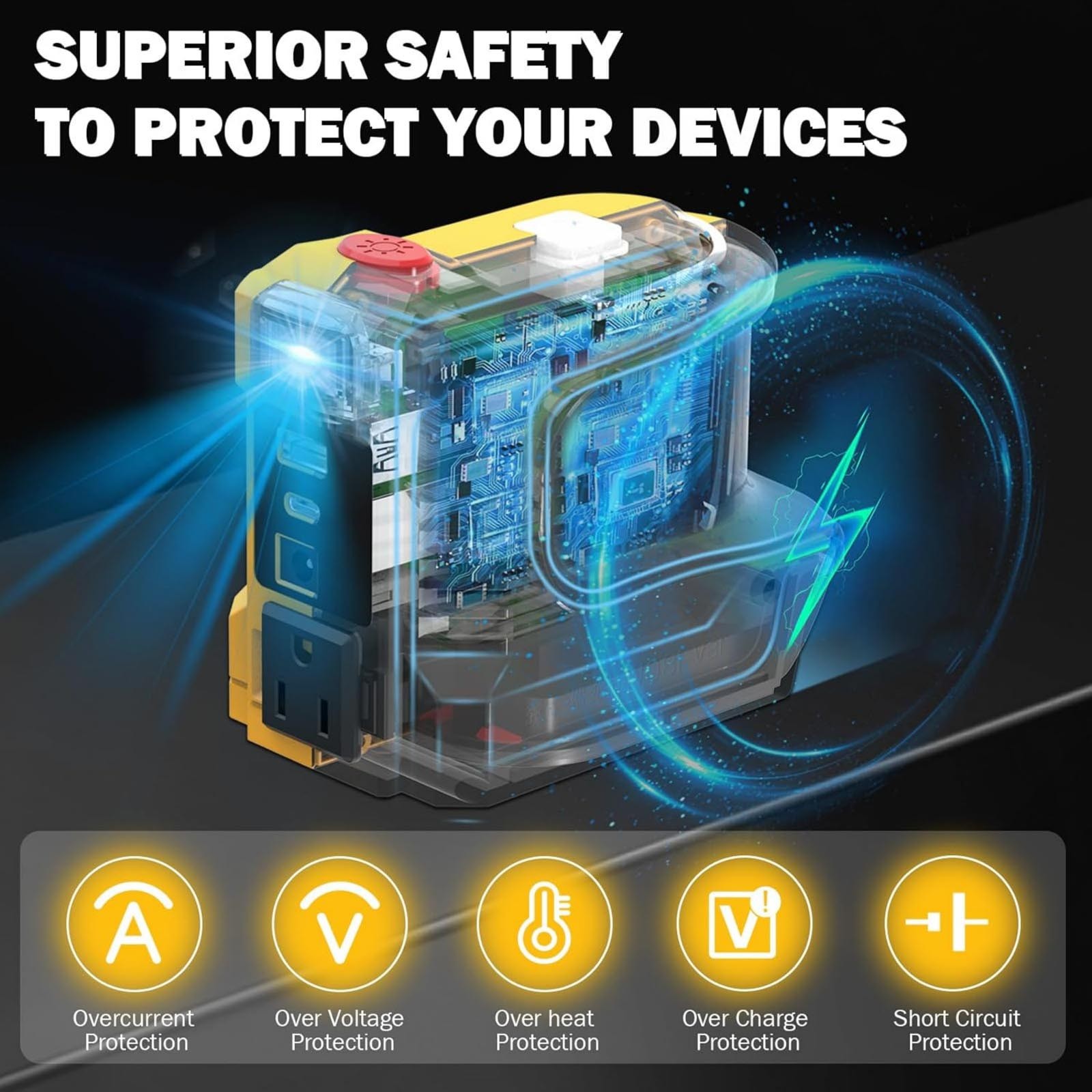 Power Inverter Accessory for DeWalt 20V Battery with DC 12V Port 220W Output