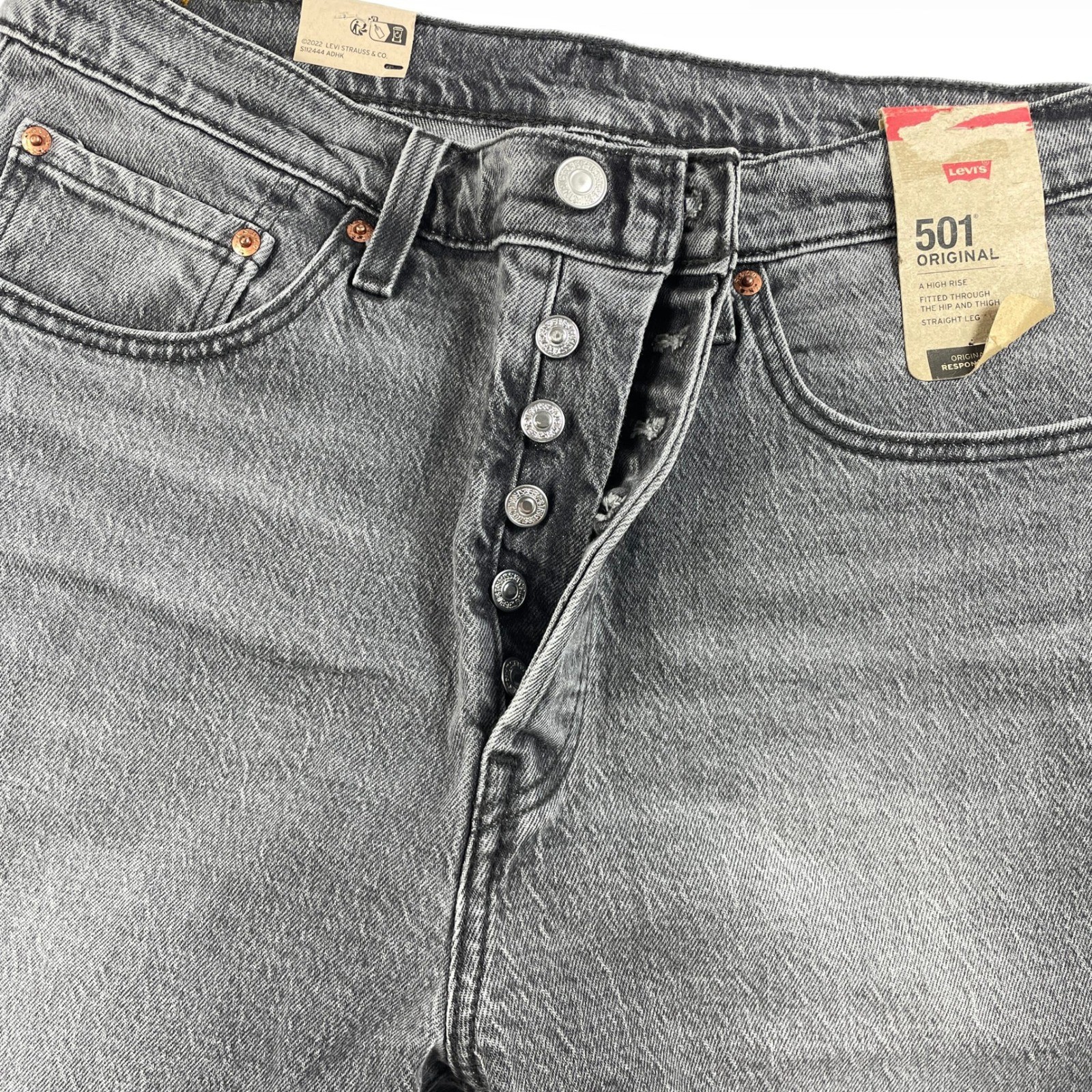 как выглядит Levis 501 Original Womens High Rise Straight Leg Jeans Gray Wash NWT 27x30 фото