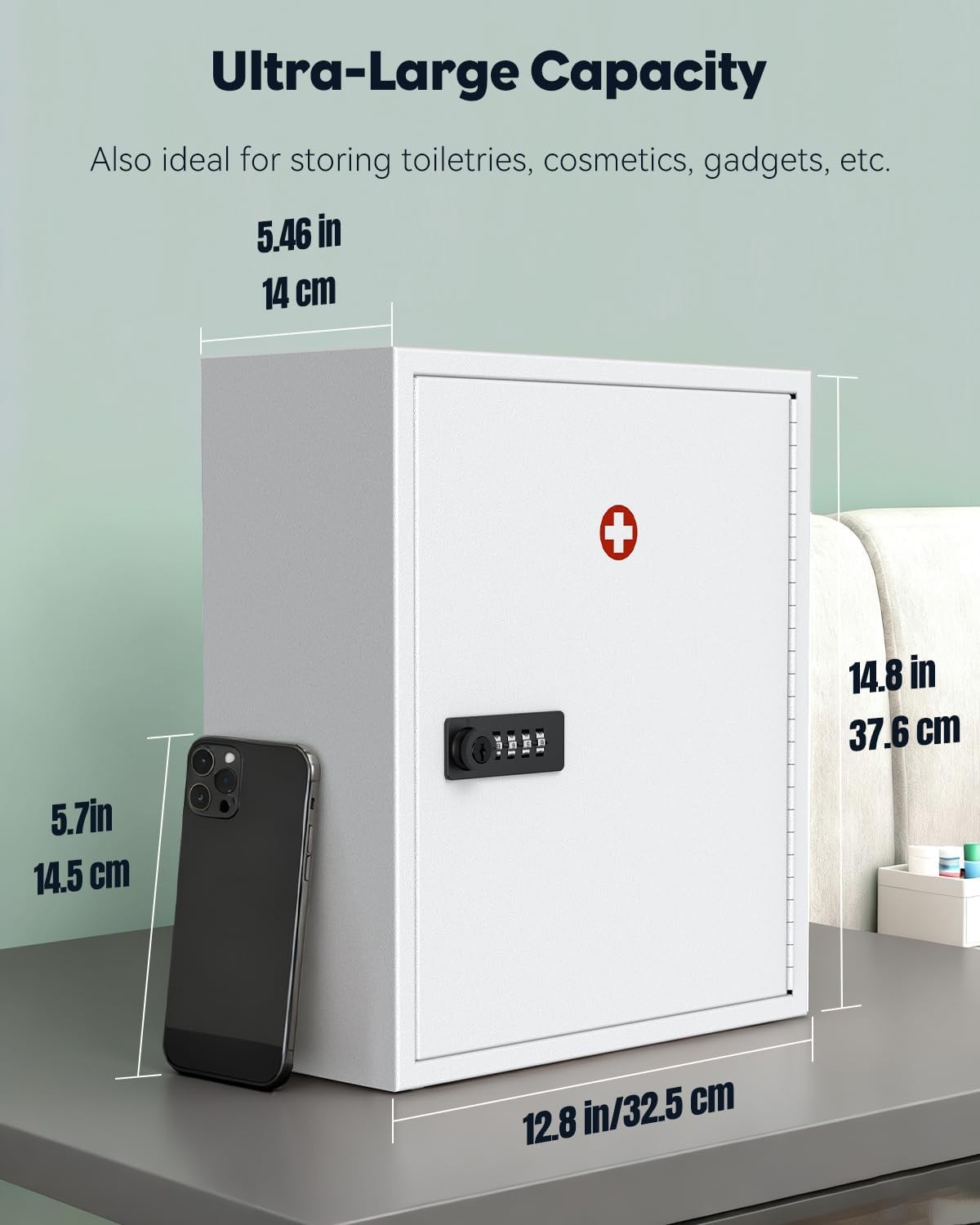 Lockable Wall Mount Medicine Cabinet - Secure Steel Storage Organizer, White