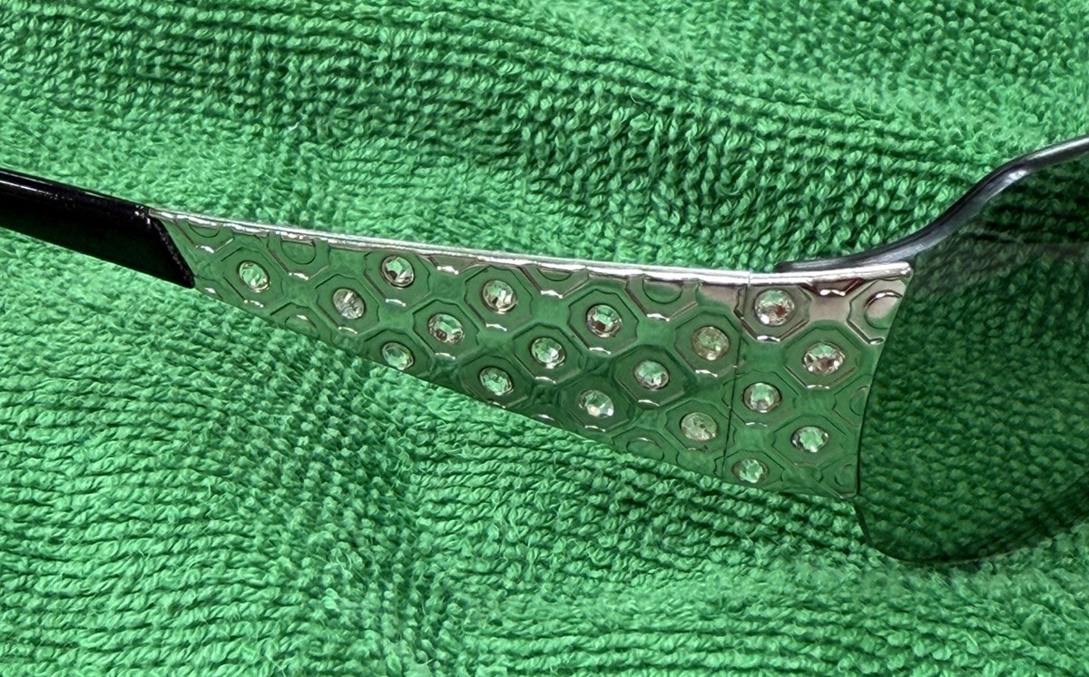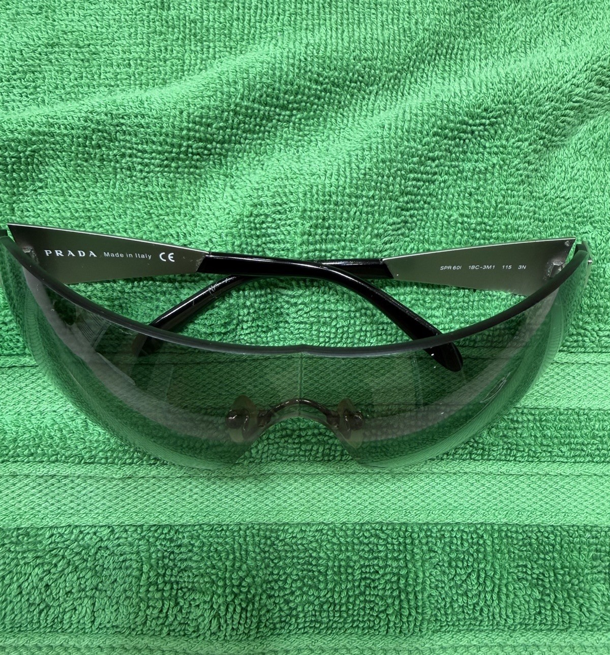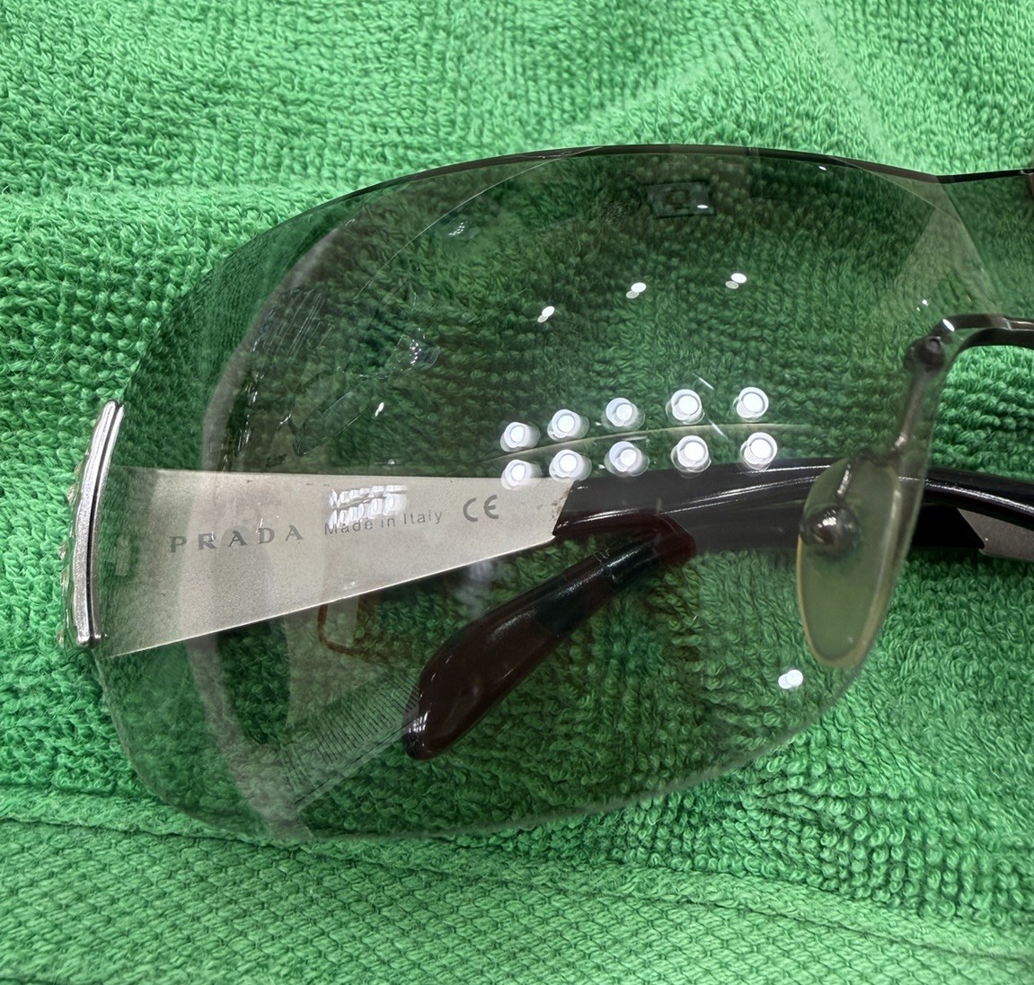 PRADA SPR 60I 1BC-3M1 Shield Sunglasses Rhinestone Metal Side Black Lens Italy
