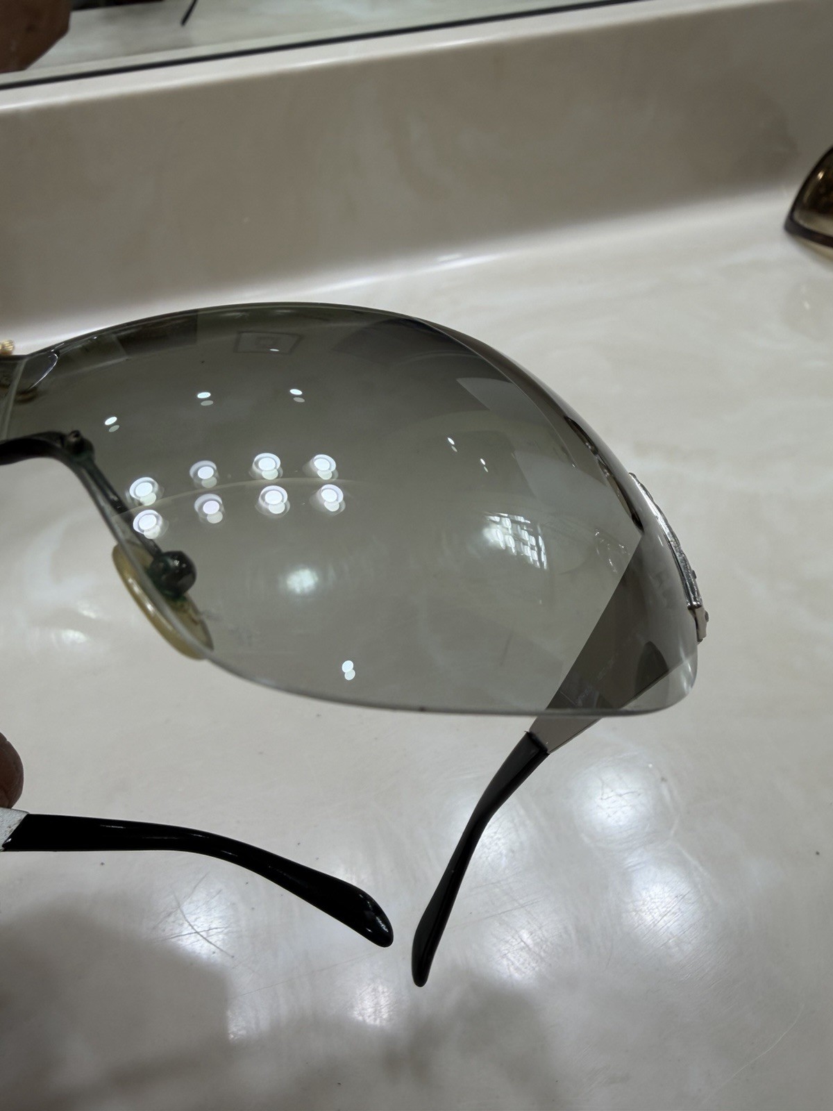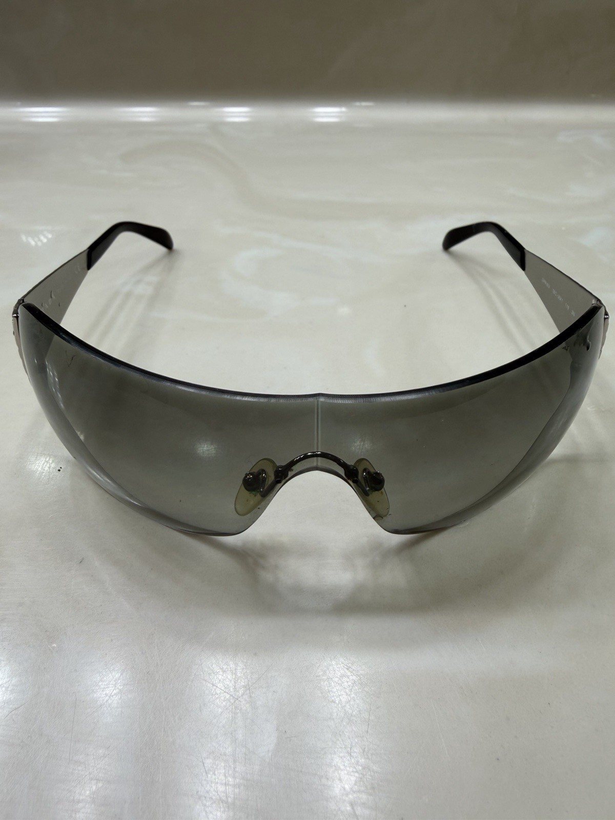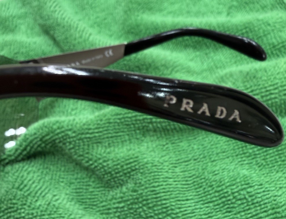как выглядит PRADA SPR 60I 1BC-3M1 Shield Sunglasses Rhinestone Metal Side Black Lens Italy фото