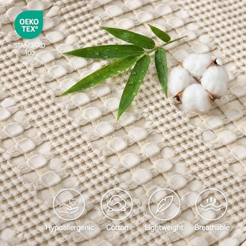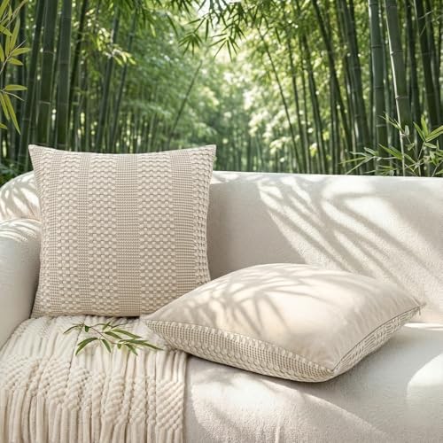 2 Pack Bamboo Fiber Pillow Covers - Waffle Weave, 20 x 20 Pack of 2 Beige