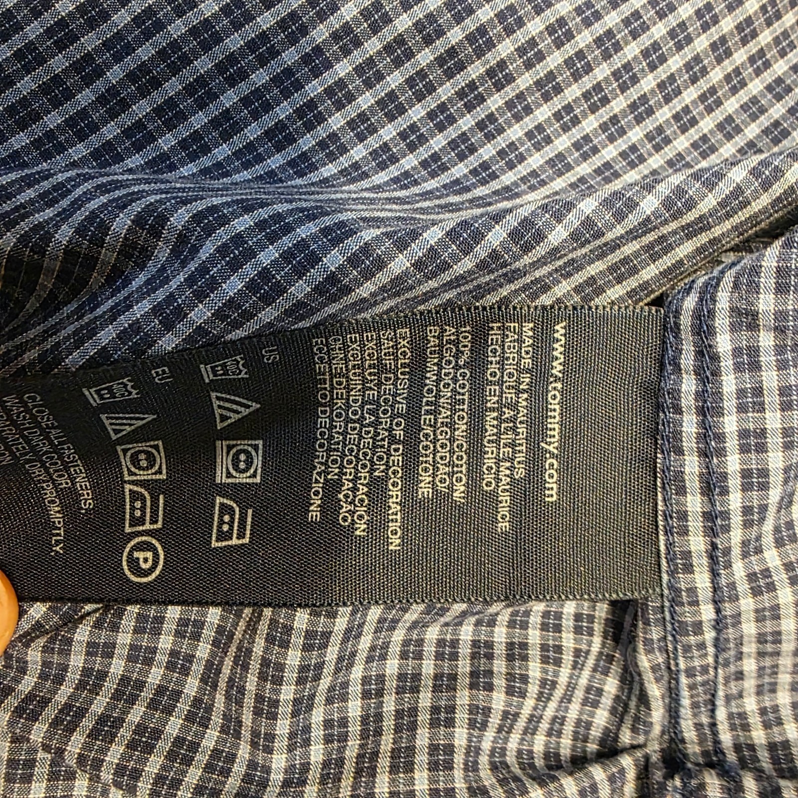 как выглядит Tommy Hilfiger Mens Blue White Micro Check Cotton Button Down Shirt Large L фото